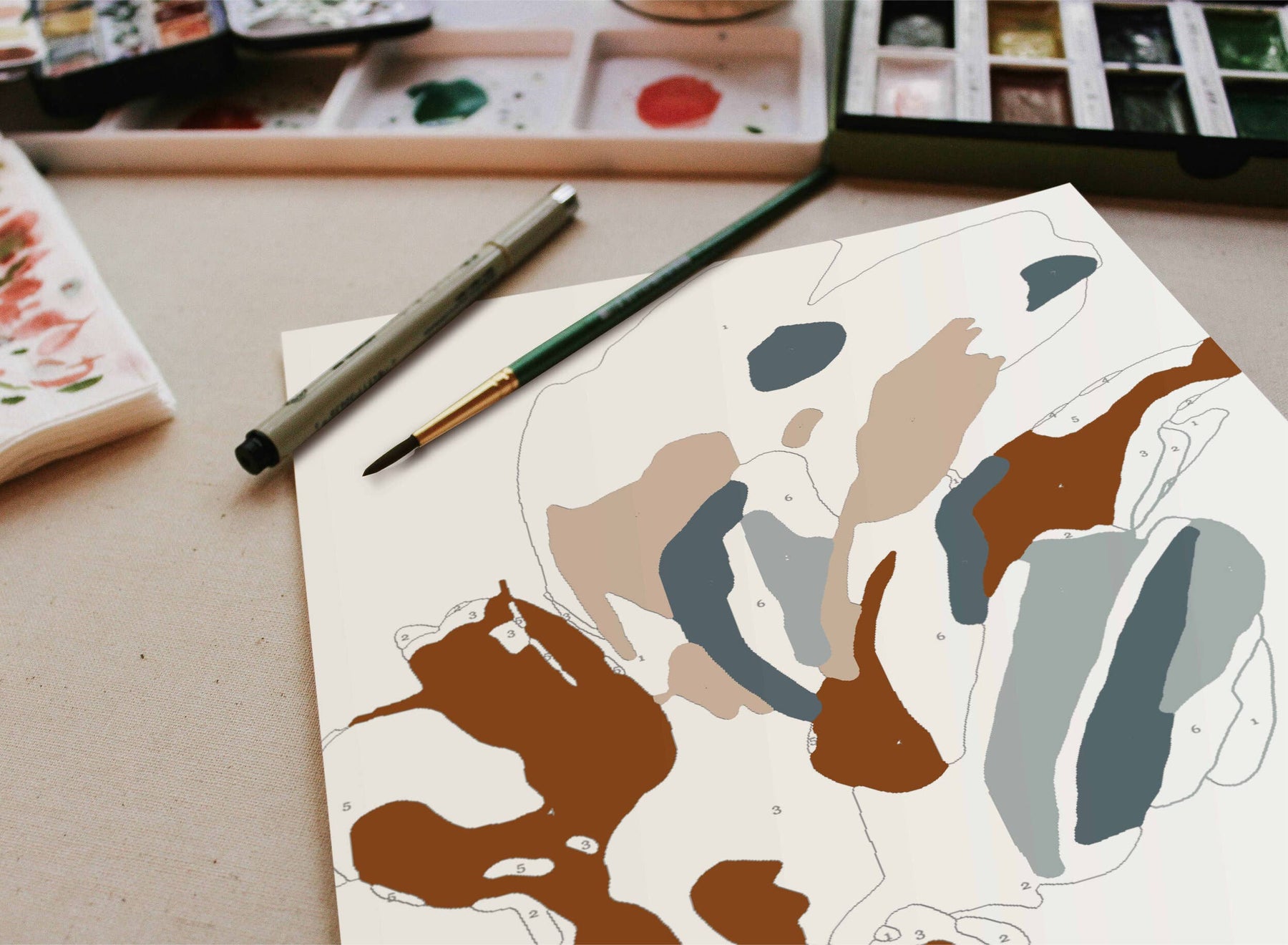 • Each outline is numbered to match the included paint pots