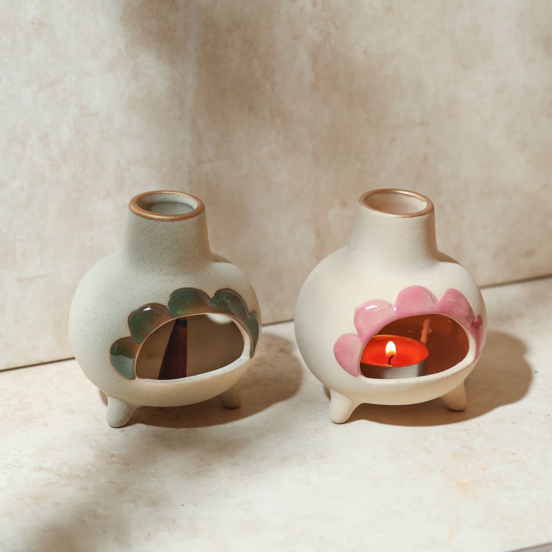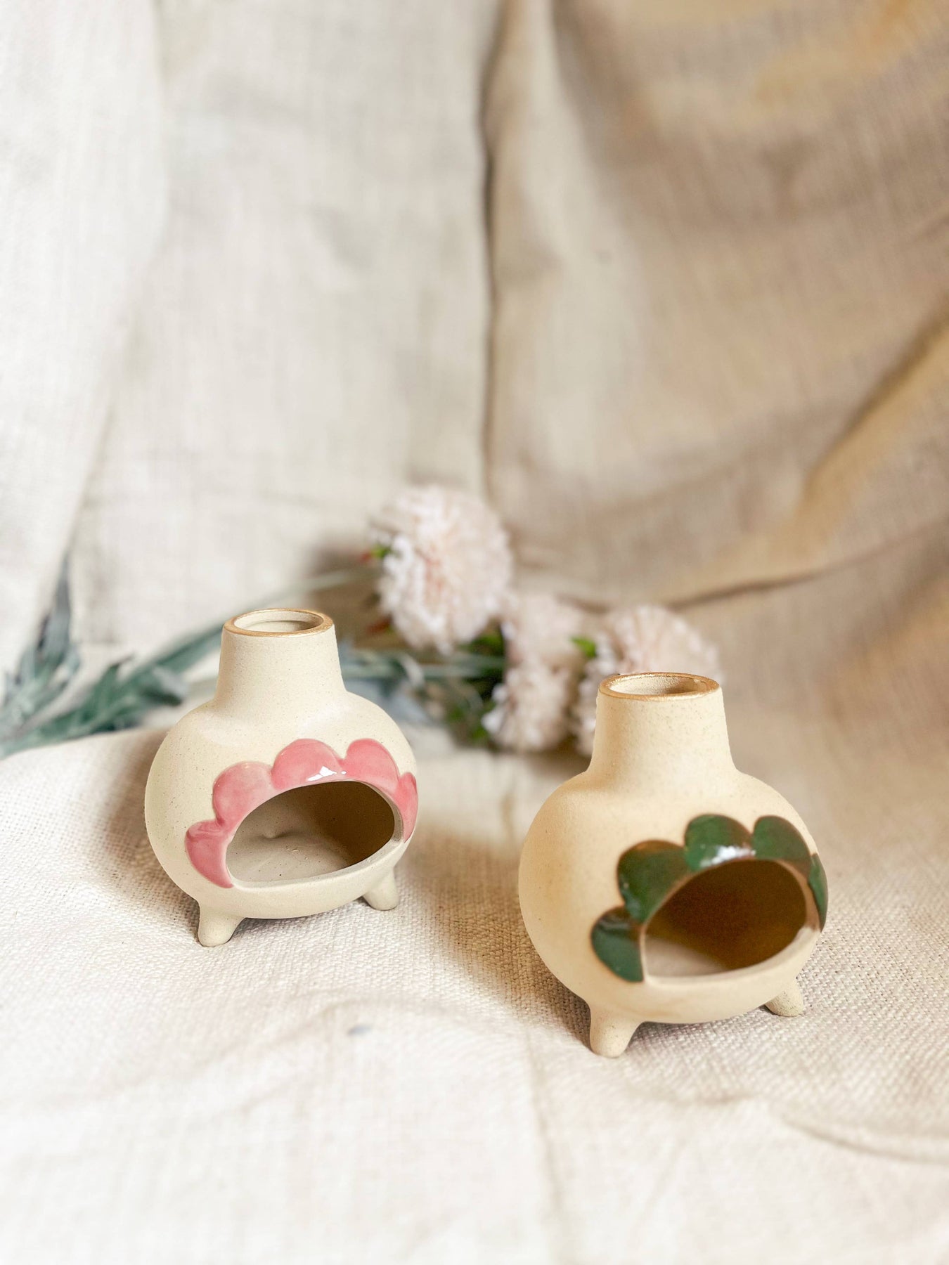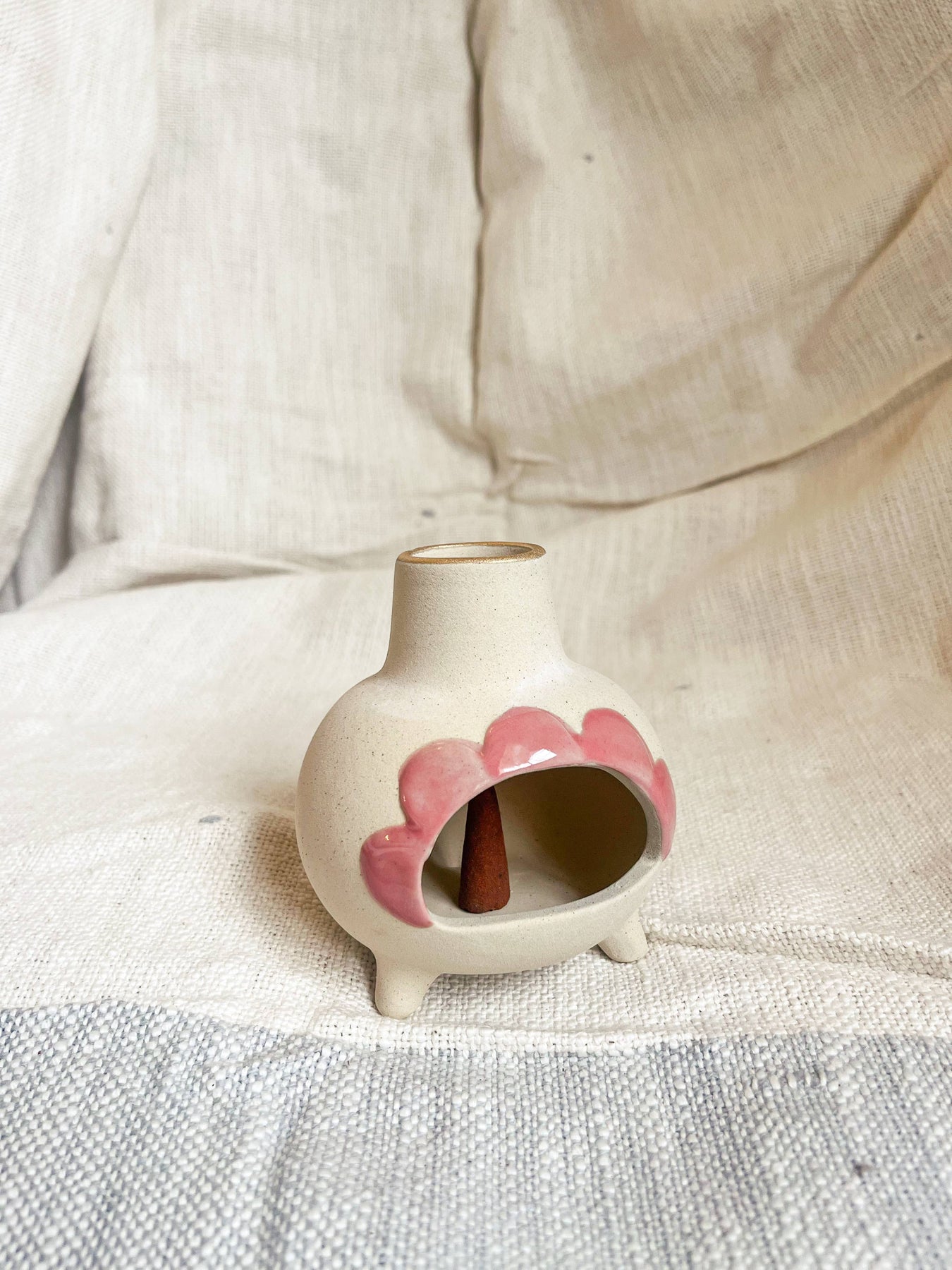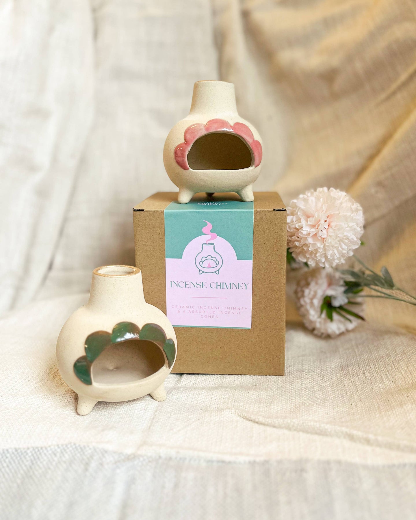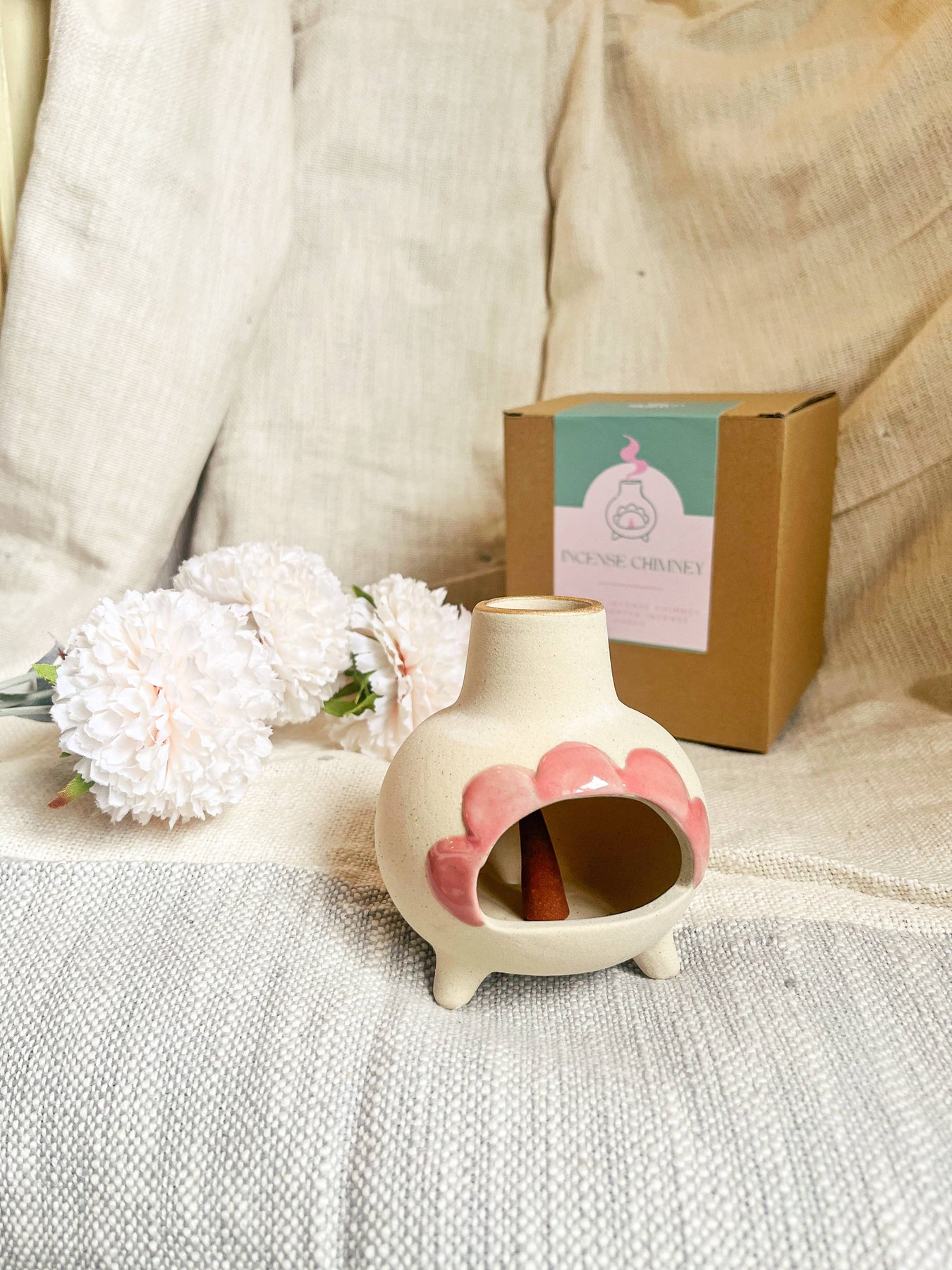 Designed with a soft scalloped edge and a gold-kissed rim, this ceramic incense chimney blends quiet charm with purposeful utility. Whether you're burning palo santo, cones, or simply lighting a tealight, it adds a gentle elegance to your ritual. A thoughtful gift or personal indulgence, it turns even a moment of stillness into something special.
