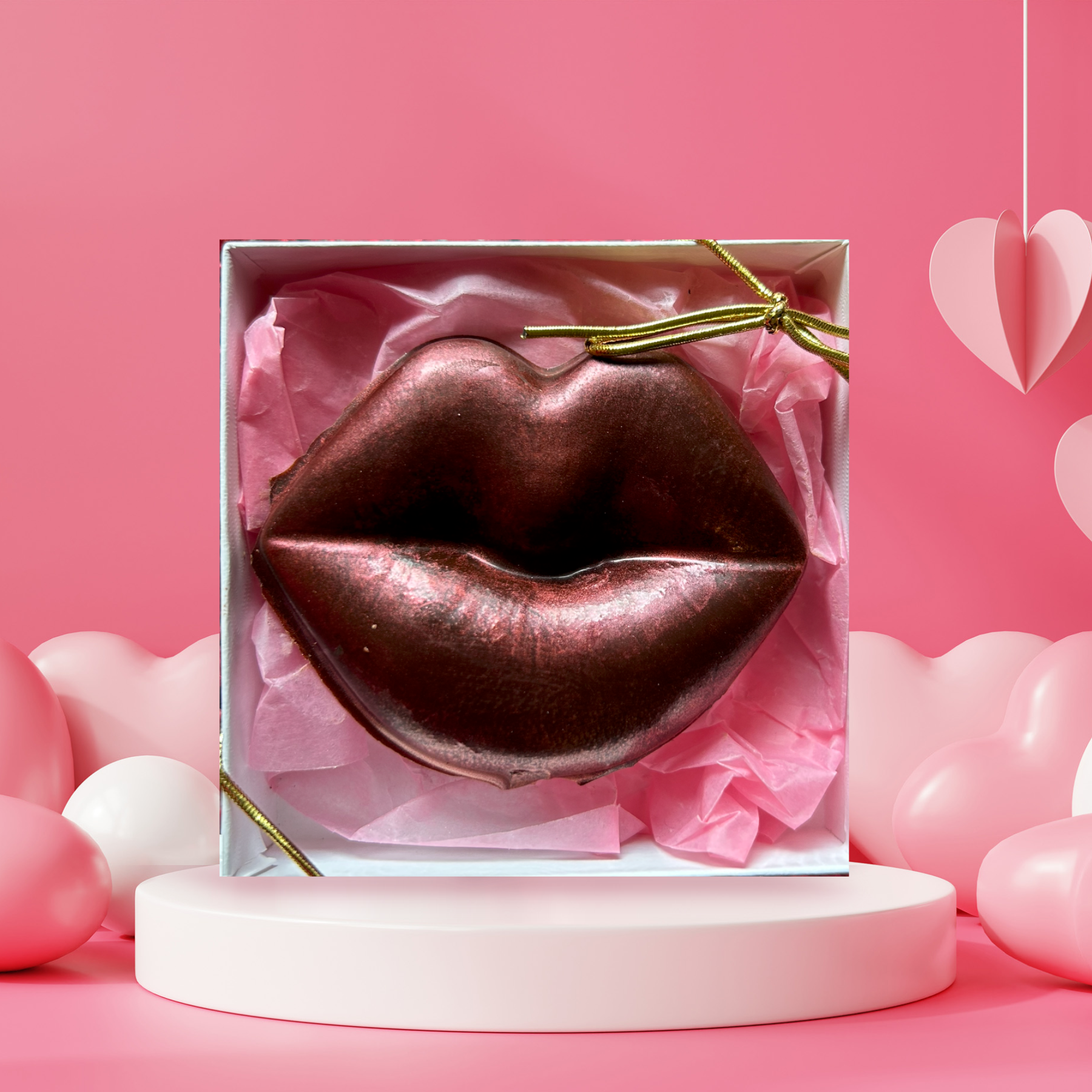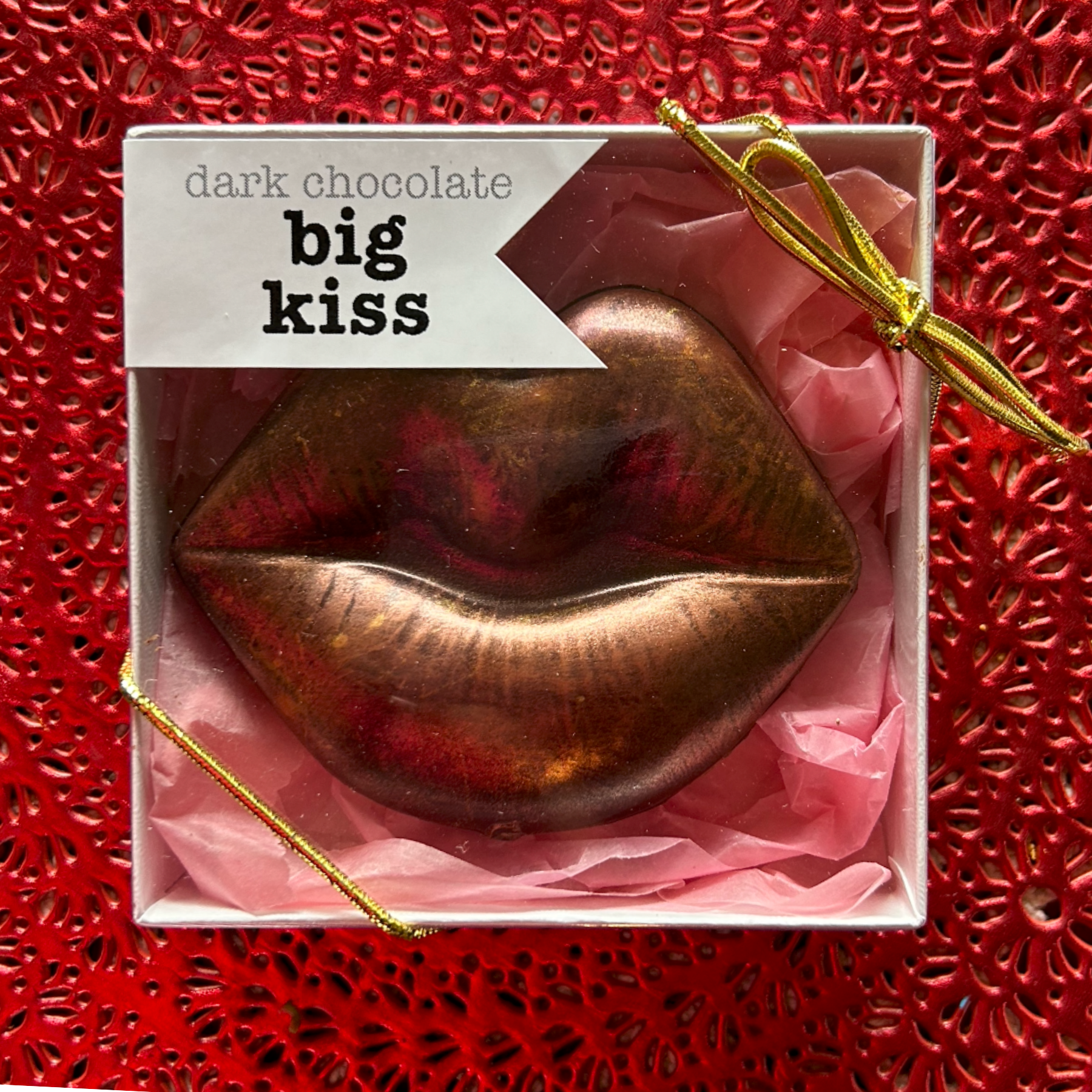 These sculpted lips are cast from rich, organic 70% dark chocolate and brushed by hand with edible mineral shimmer. Perfect as a cheeky gift or decadent treat, each piece is made with clean, fair trade ingredients that deliver bold flavor and a hint of glam.