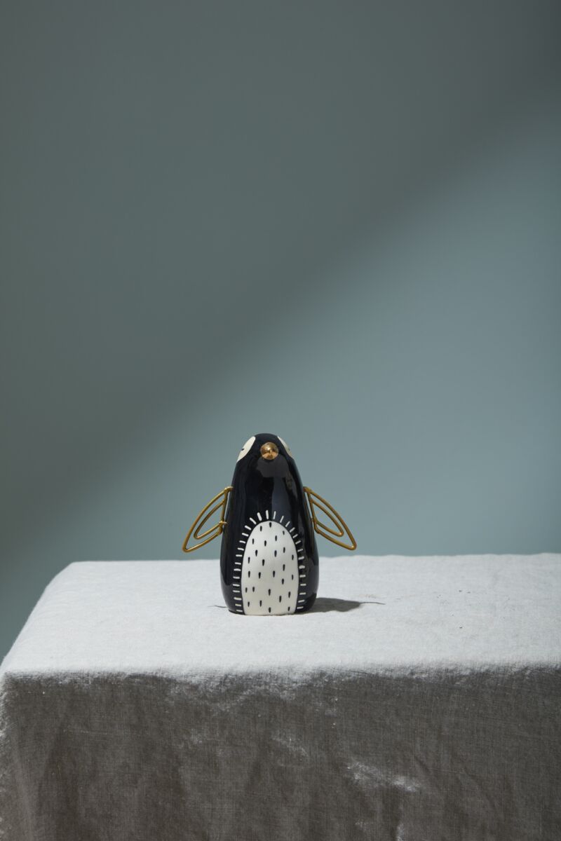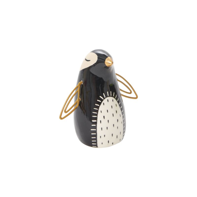 The Freezy Friends Figurines collection includes beloved winter friends for a home bookshelf, mantle, or tabletop. Ceramic figures are decorated with gold wire metal details and hand painted features.