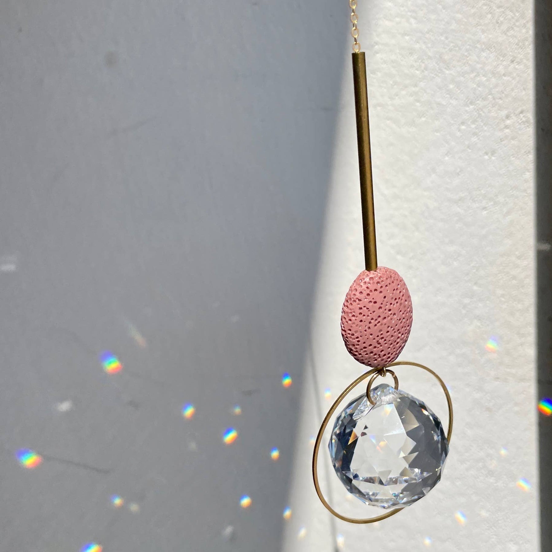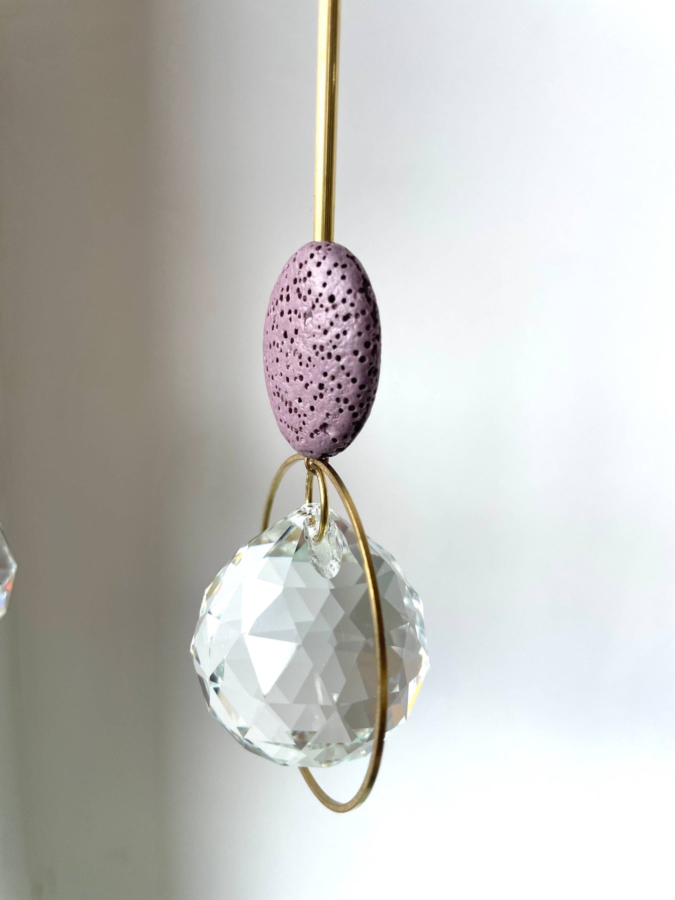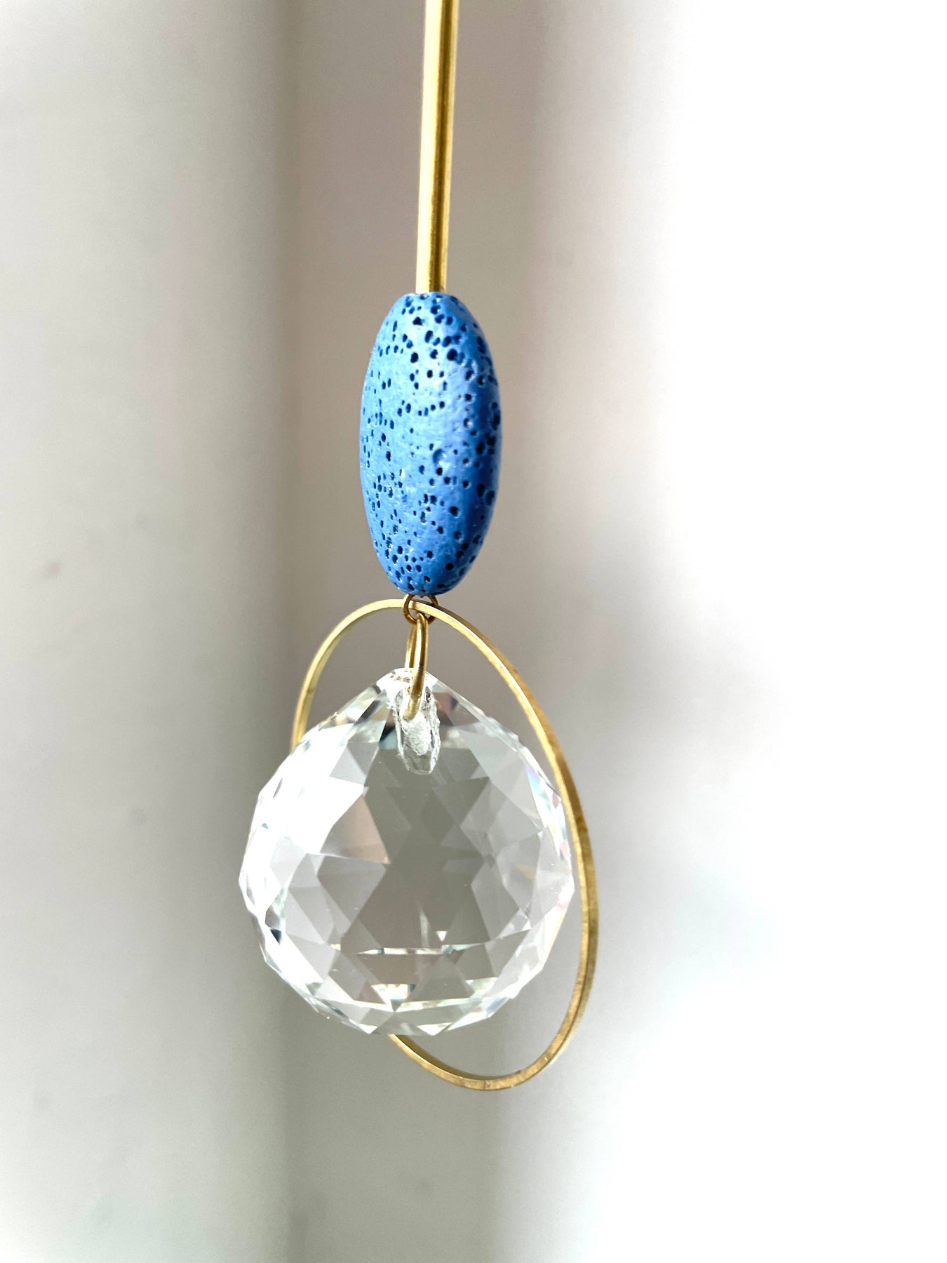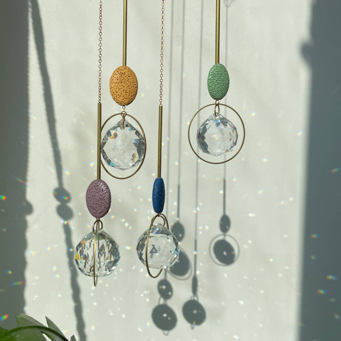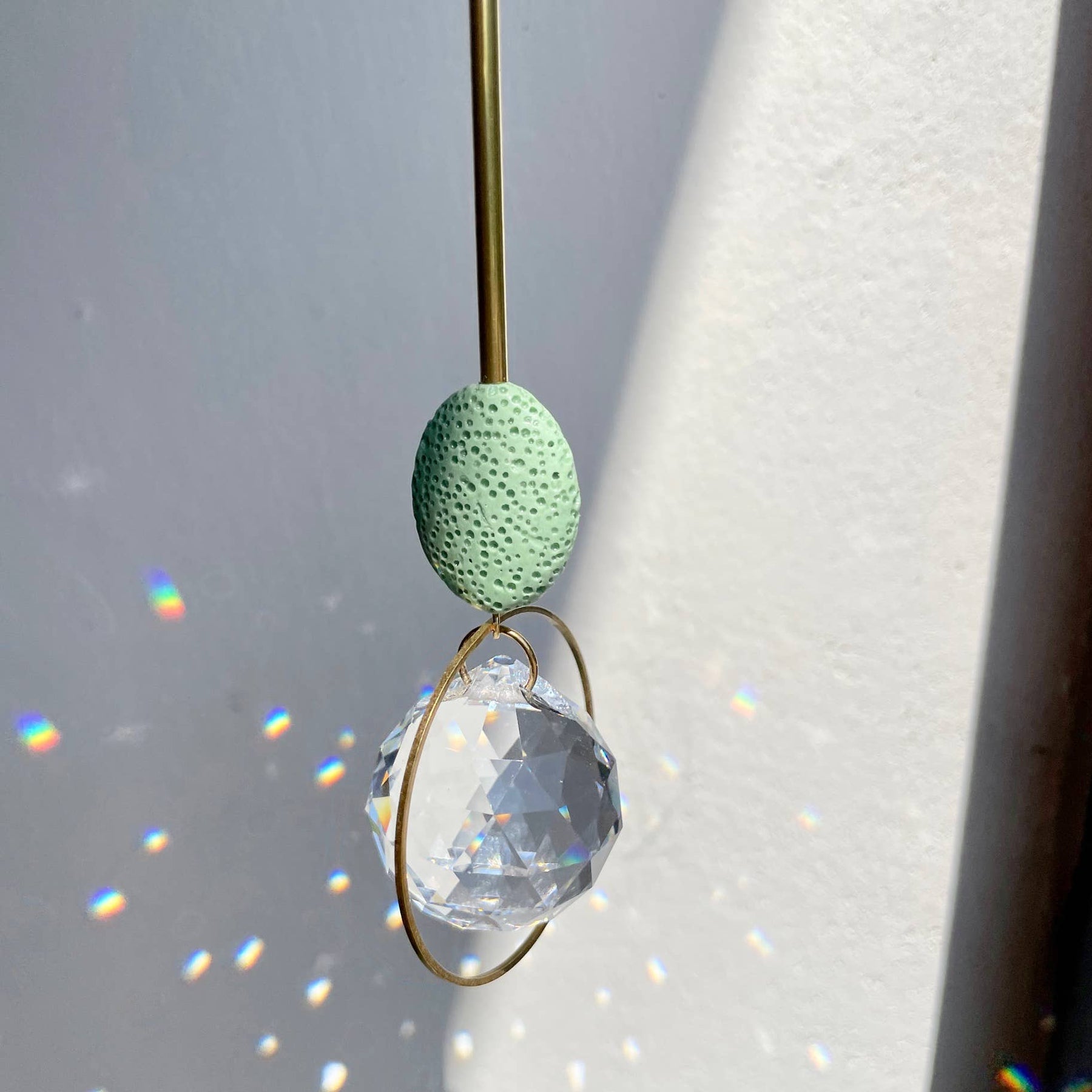 Crafted in a Hamburg studio, these handmade suncatchers scatter soft rainbow dots across your space as sunlight passes through each crystal. A lava pearl and gold-toned brass rod add texture and warmth even on overcast days. Each set includes two crystal hangers on a 50 cm brass chain, with a hook that allows flexible hanging or looping.