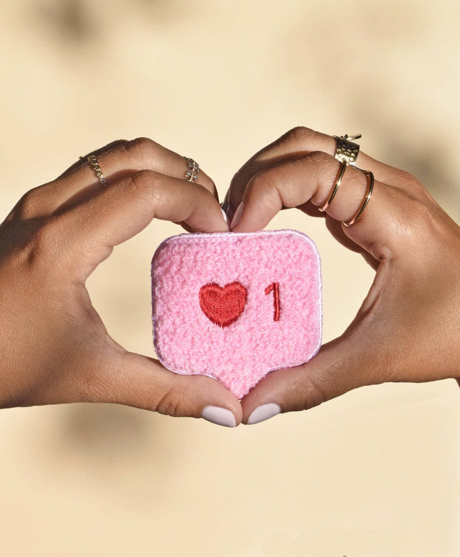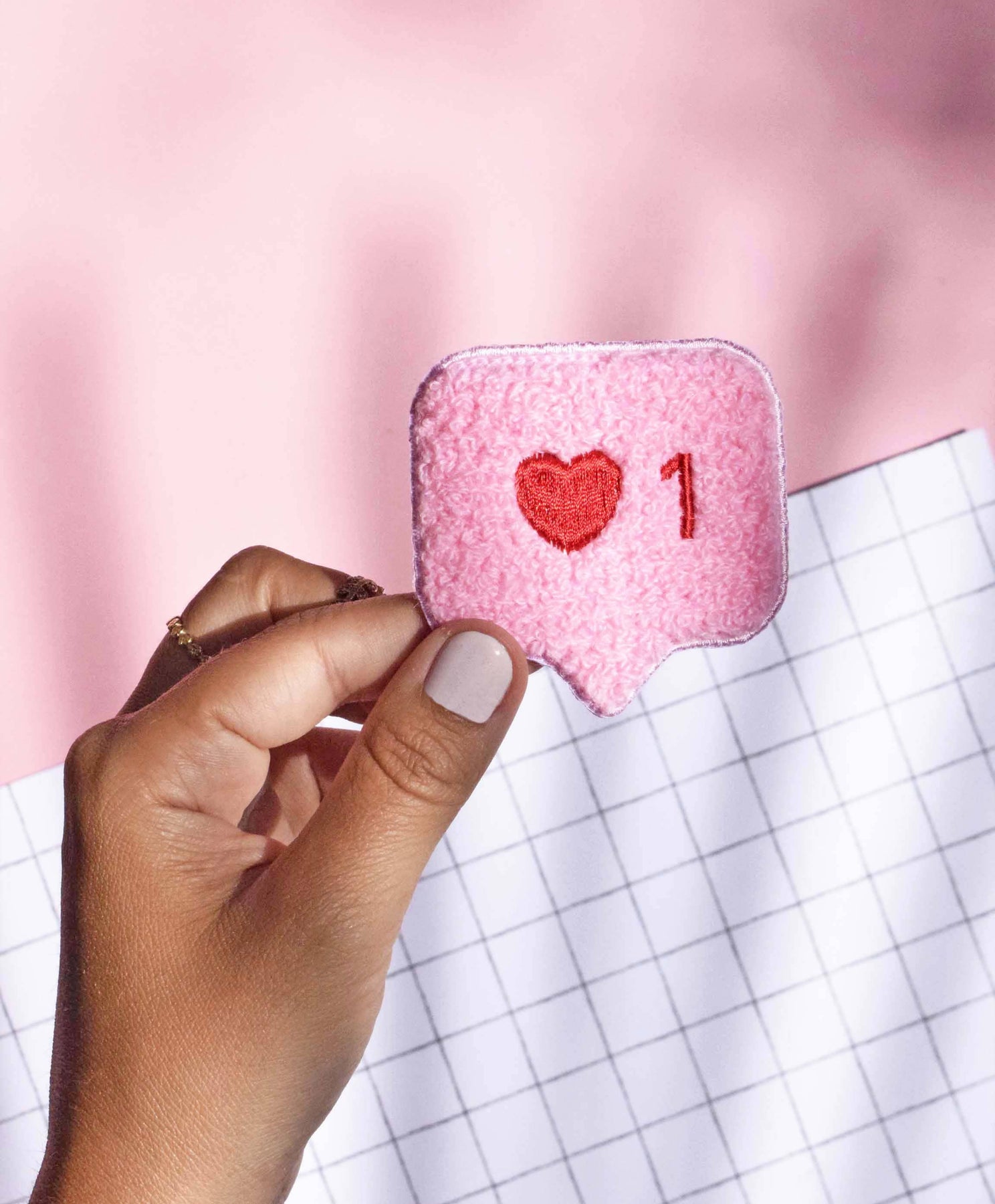 Iron-on patch like Instagram, its pink loop fleece texture and its red embroidered heart are worth all the “likes” in the world, the cool thing is that it can be placed in seconds with the iron Respectful of nature Materials - cotton Size: 6 x 6 cm