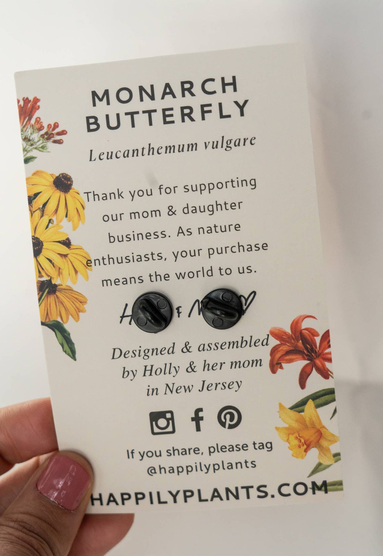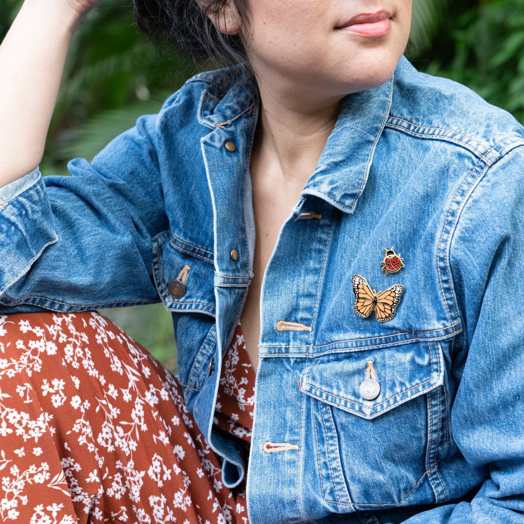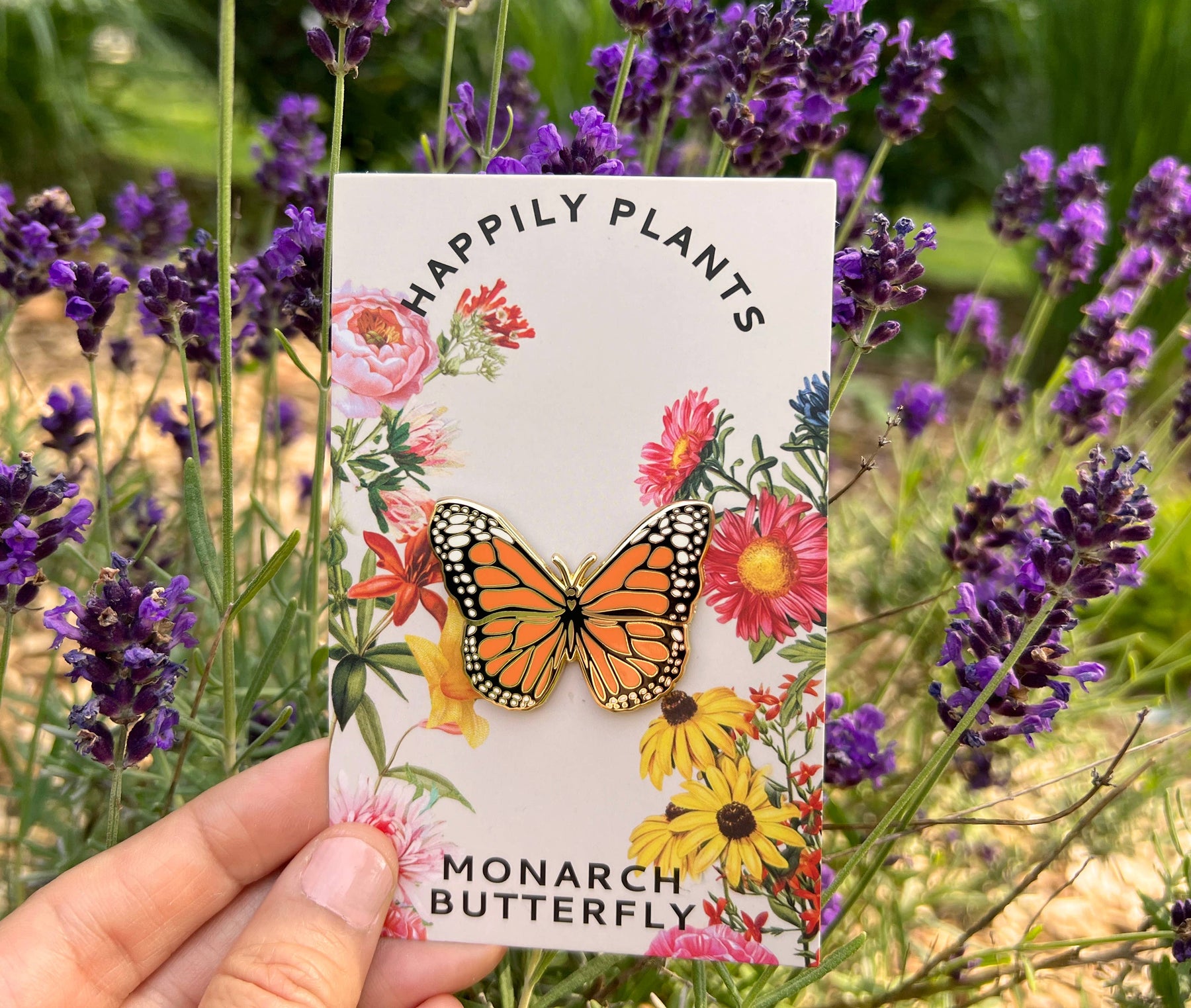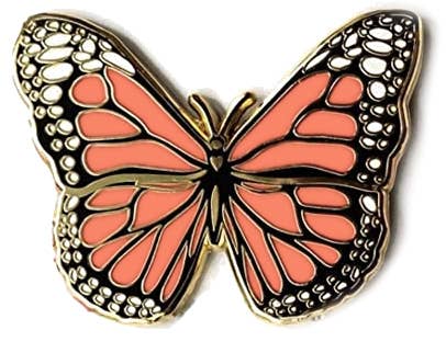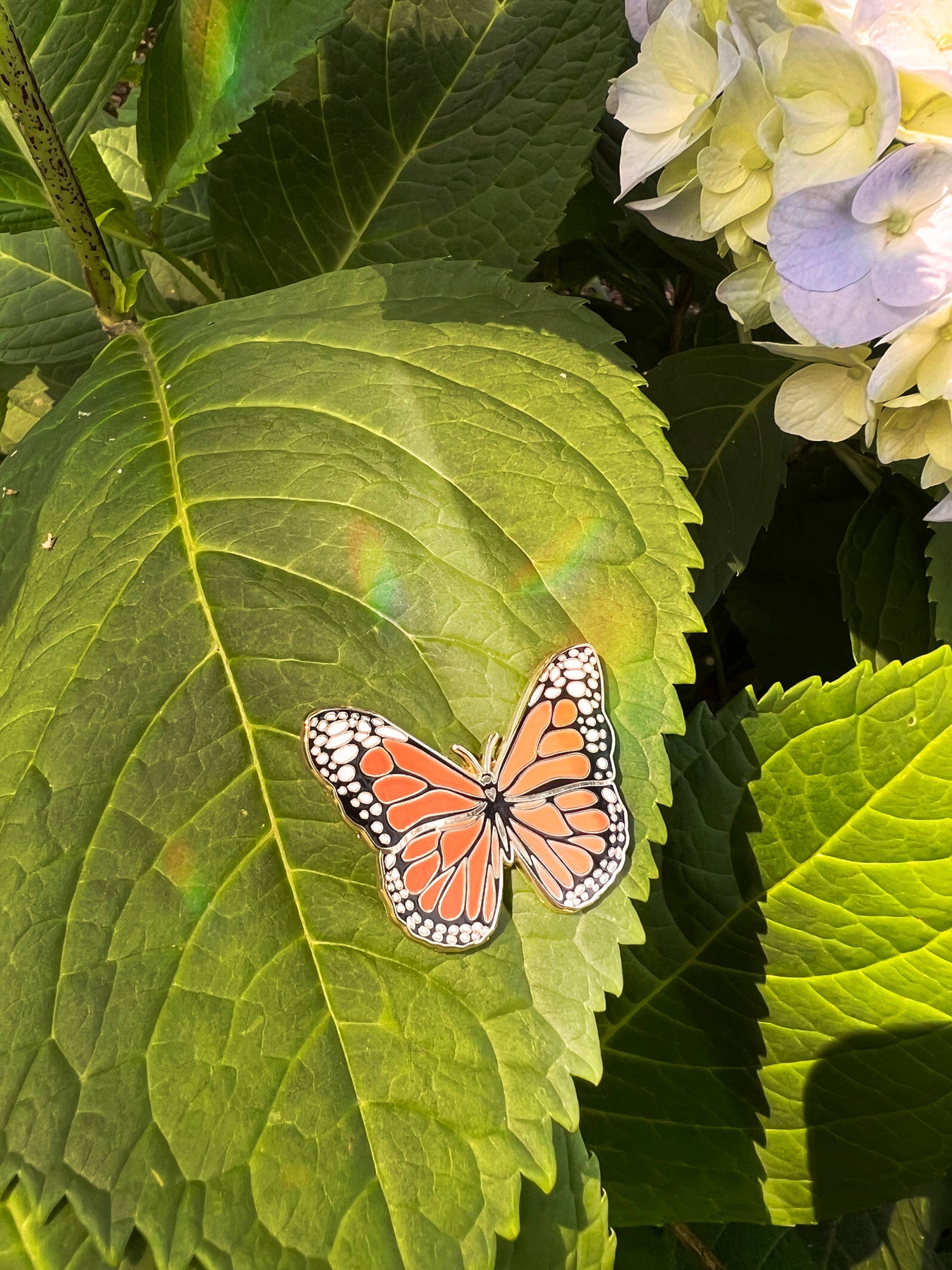 A delicate nod to one of nature’s most iconic pollinators, this Monarch Butterfly Lapel Pin adds a bright, graceful touch to any outfit or accessory. Hand-designed in New Jersey, it features a rich orange and black enamel finish accented with gold tones for a subtle shine. Perfect for jackets, bags, or hats, it’s a charming way to share your love for butterflies year-round.