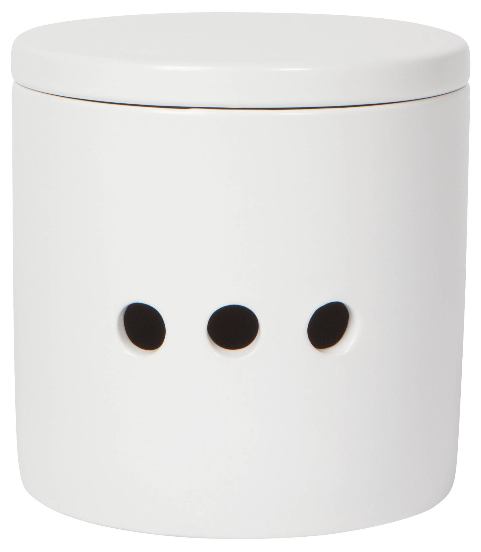 A staple in every kitchen, garlic can now be kept fresh and ready to chop, mince, or grate into your next dish in these attractive, breathable containers. Air holes keep garlic fresh and moisture-free. The matte glaze and minimalist profile add a modern look to any kitchen. • size: dia4 x h4in. • material content: stoneware. • care instructions: dishwasher safe.