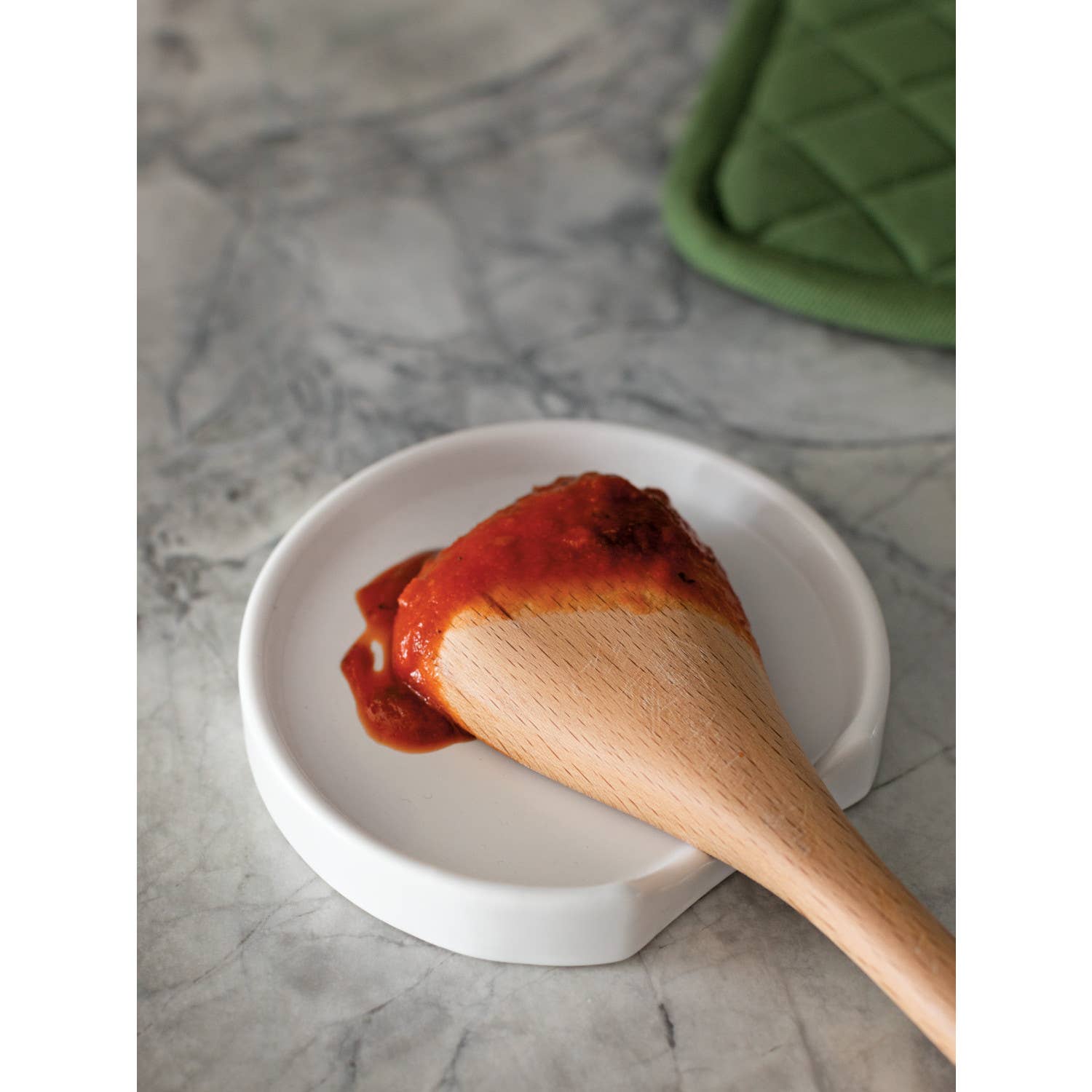 Add modern practicality to your food prep area with the gentle sloping design of the matte fog spoon rest by Now Designs. Stoneware construction adds durability. The matte glaze and minimalist profile add a contemporary look to any kitchen. • size: w4.5 x l5 x h1in • material content: stoneware • care instructions: dishwasher safe