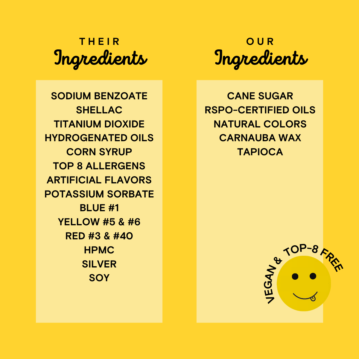 • No confectioner’s glaze