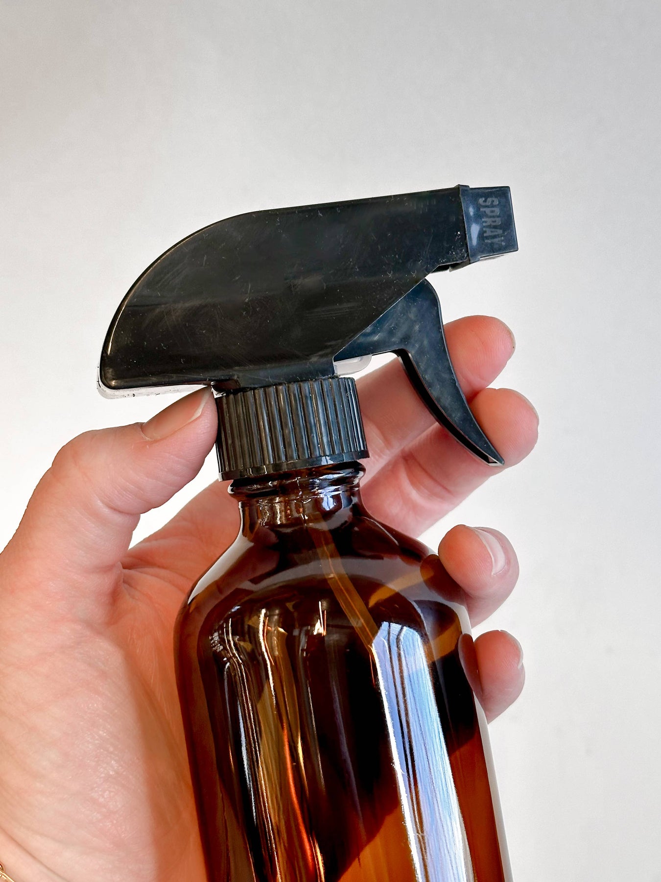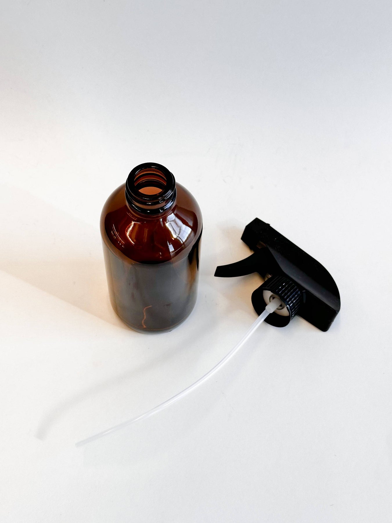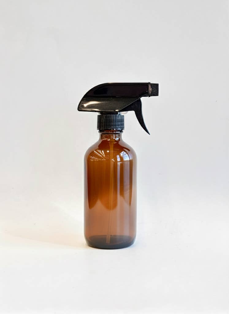 An 8 oz spray bottle made of amber glass for plant care, cleaning and more. This 8oz amber glass Boston Round bottle is perfect for mixing and applying plant care products — from DIY leaf sprays to simple water misters. Its timeless apothecary look also makes it an easy, shelf-ready add-on for your plant care section.