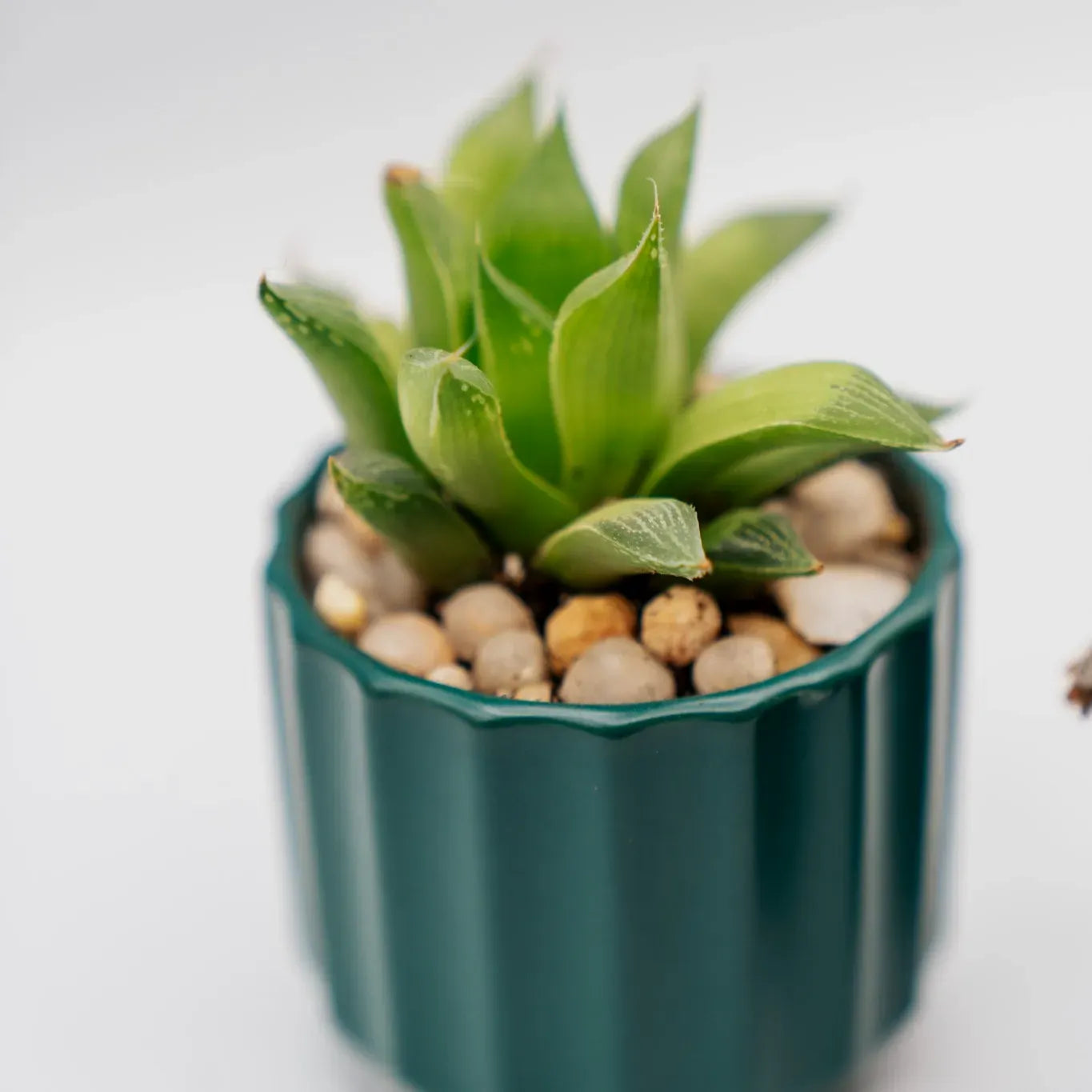 Add a touch of modern elegance to any space with this sleek planter. Featuring a unique succulent for a vibrant pop of color, it’s the perfect way to bring life to your home or office.