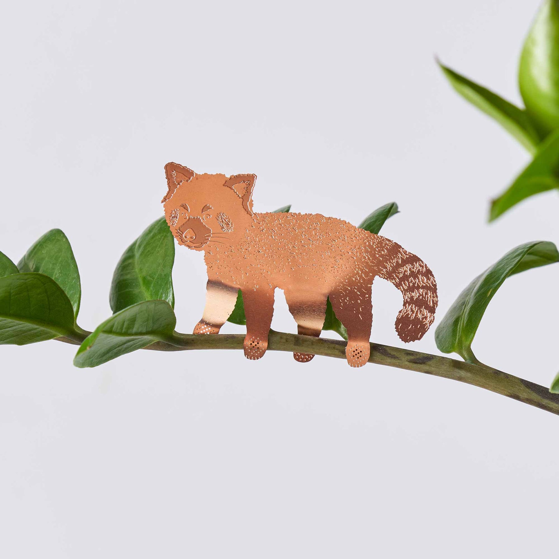 This Red Panda clings playfully to your plant stems or branches, bringing warmth and charm to any potted scene. Precision-cut from corrosion-resistant brass and finished in a rich copper tone, it's lightweight and easy to place—whether in a leafy fern, floral arrangement, or balcony planter. Designed to spark a smile and blend into your green space like a little forest spirit.