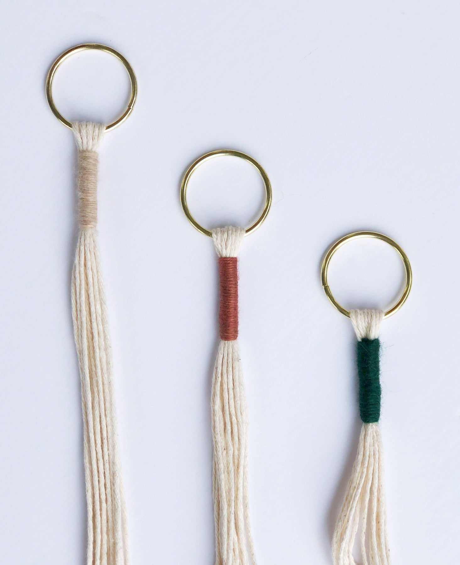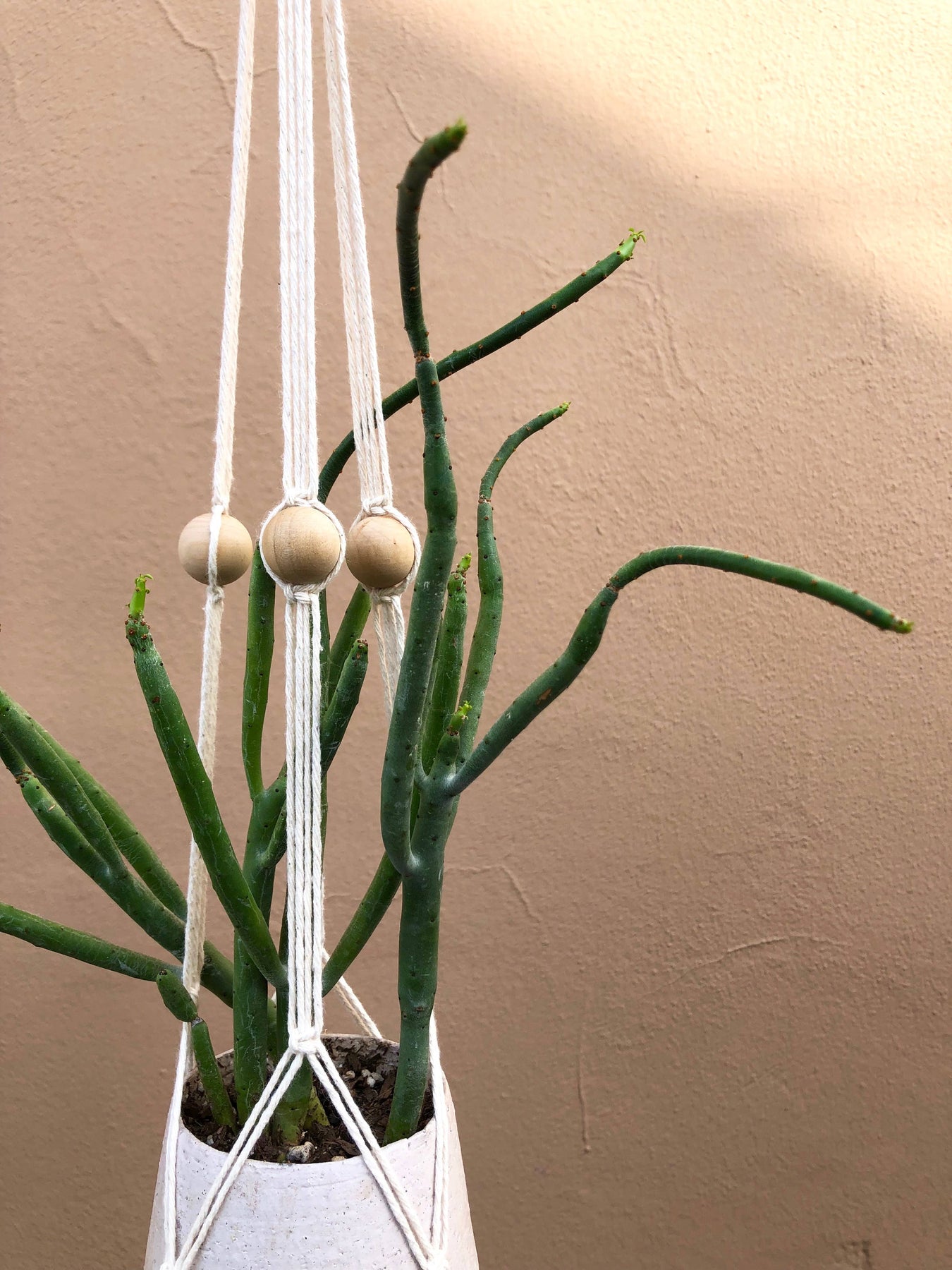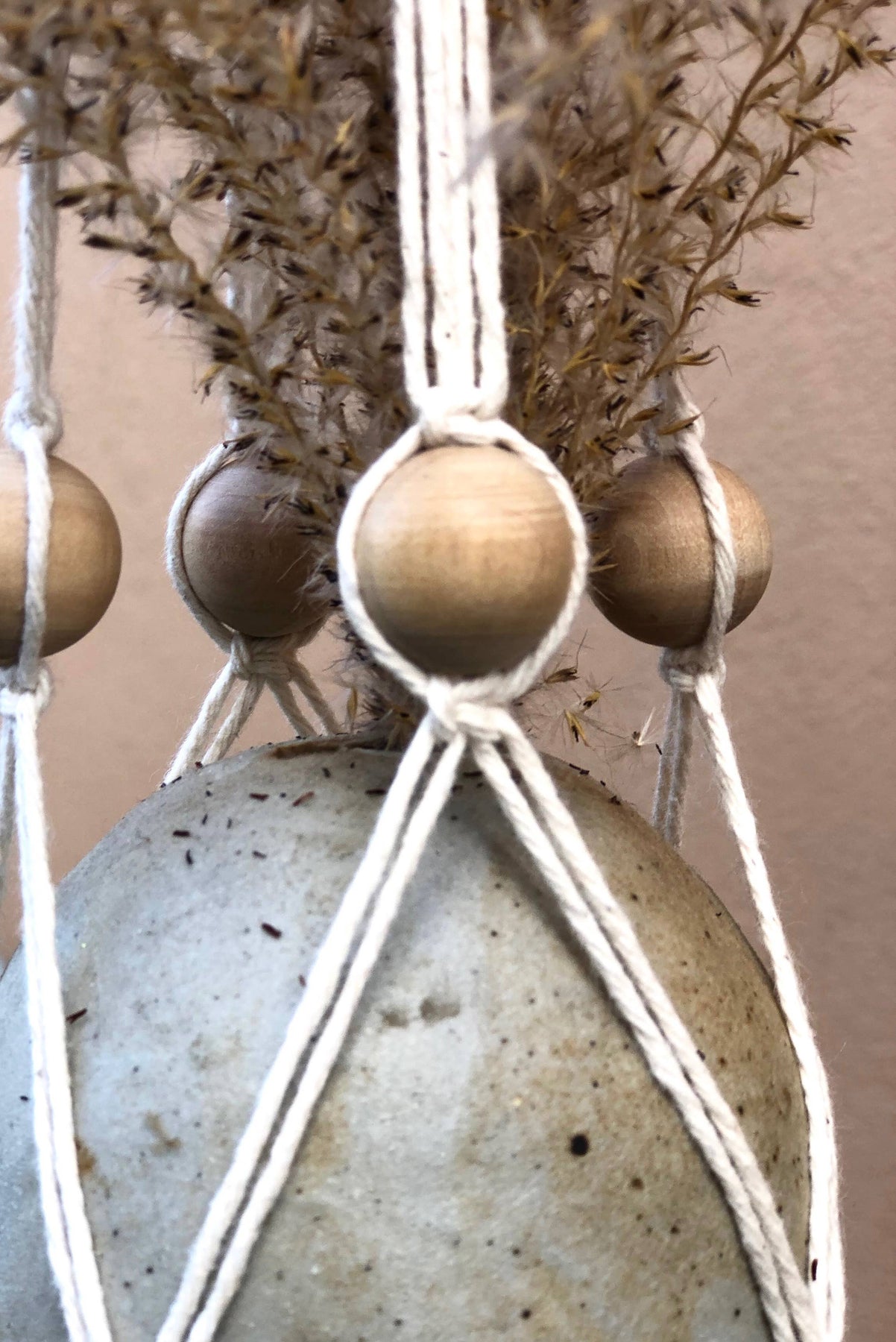 Crafted with slender natural twine and accented by small wooden beads, these airy hangers offer a gentle balance of simplicity and charm. Each piece hangs from a brass ring and features a touch of wool wrap in your choice of earthy tones—perfect for brightening up corners, windows, or narrow wall space.