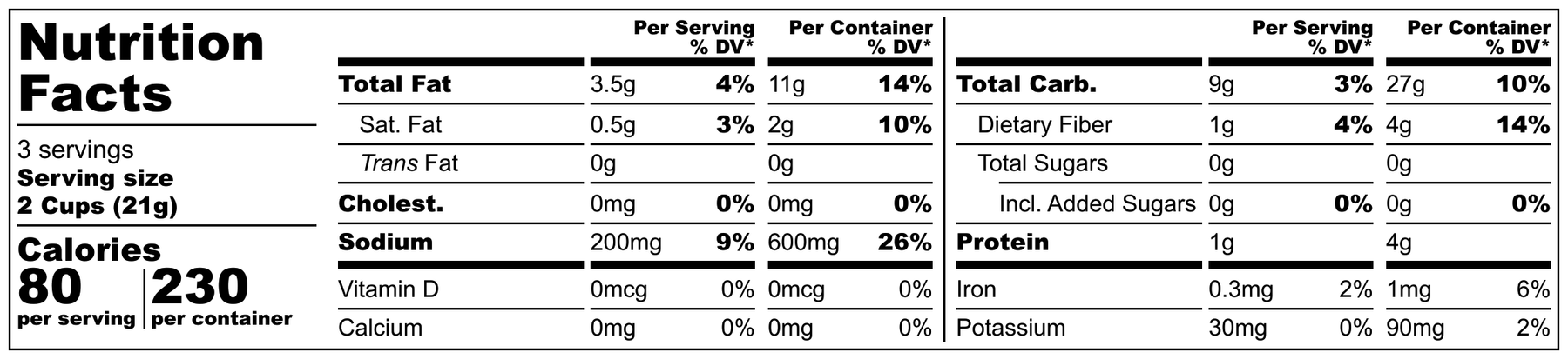 • 2.2 oz bag of savory mesquite cheddar popcorn