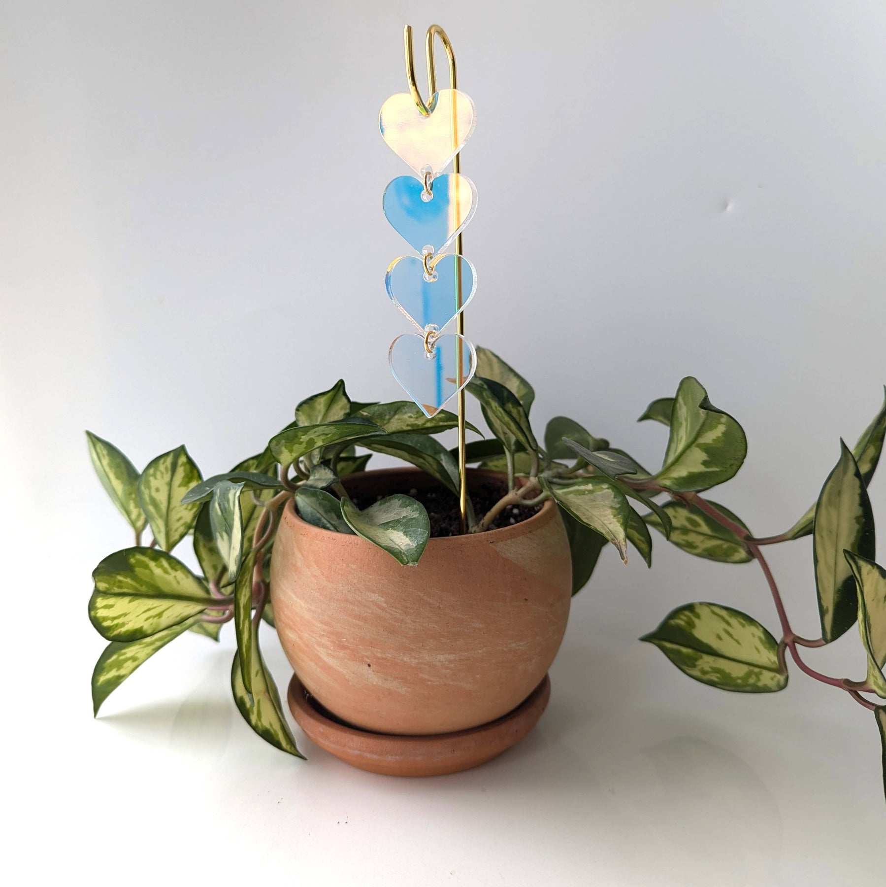 A shimmer of love for your favorite foliage. This playful pick brings a touch of rainbow to any room, casting colorful light through its layered hearts when struck by the sun. Designed to charm year-round, it's especially sweet for gifting — or keeping for yourself.
