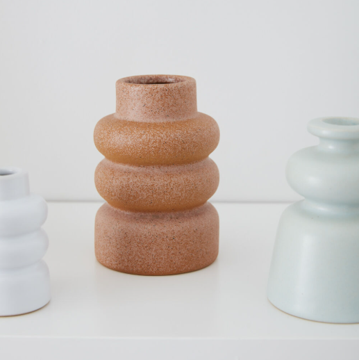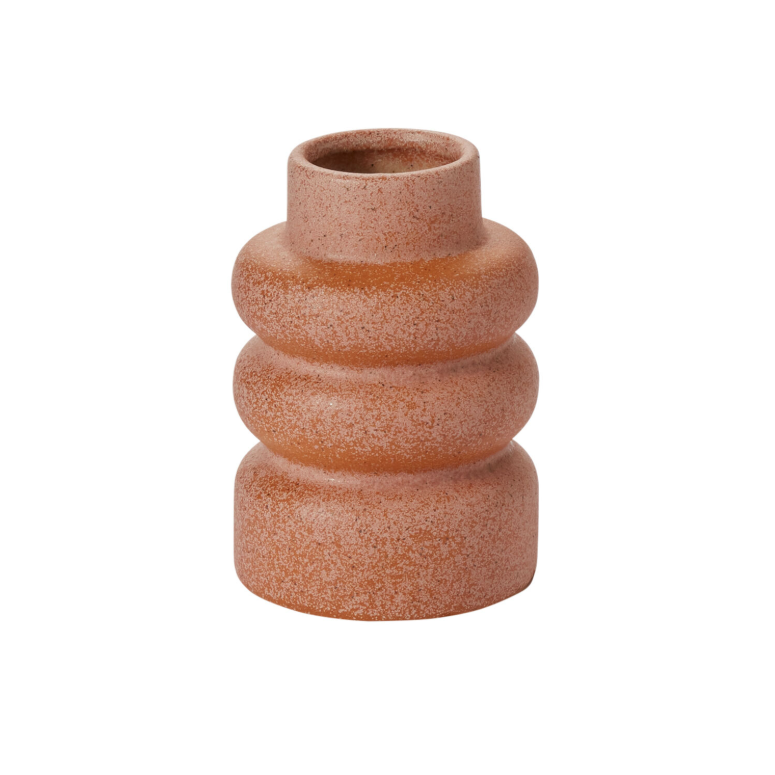 Bring modern, soft curvature & earthy hues with a smooth finish to surfaces with the brown glazed ceramic Sundown Budvase. Versatile as a standard taper candle holder or as a budvase with a few fresh or dried stems, this piece is a beautiful, trendy addition to wedding & event design, plant shop displays, or home & gift retail.