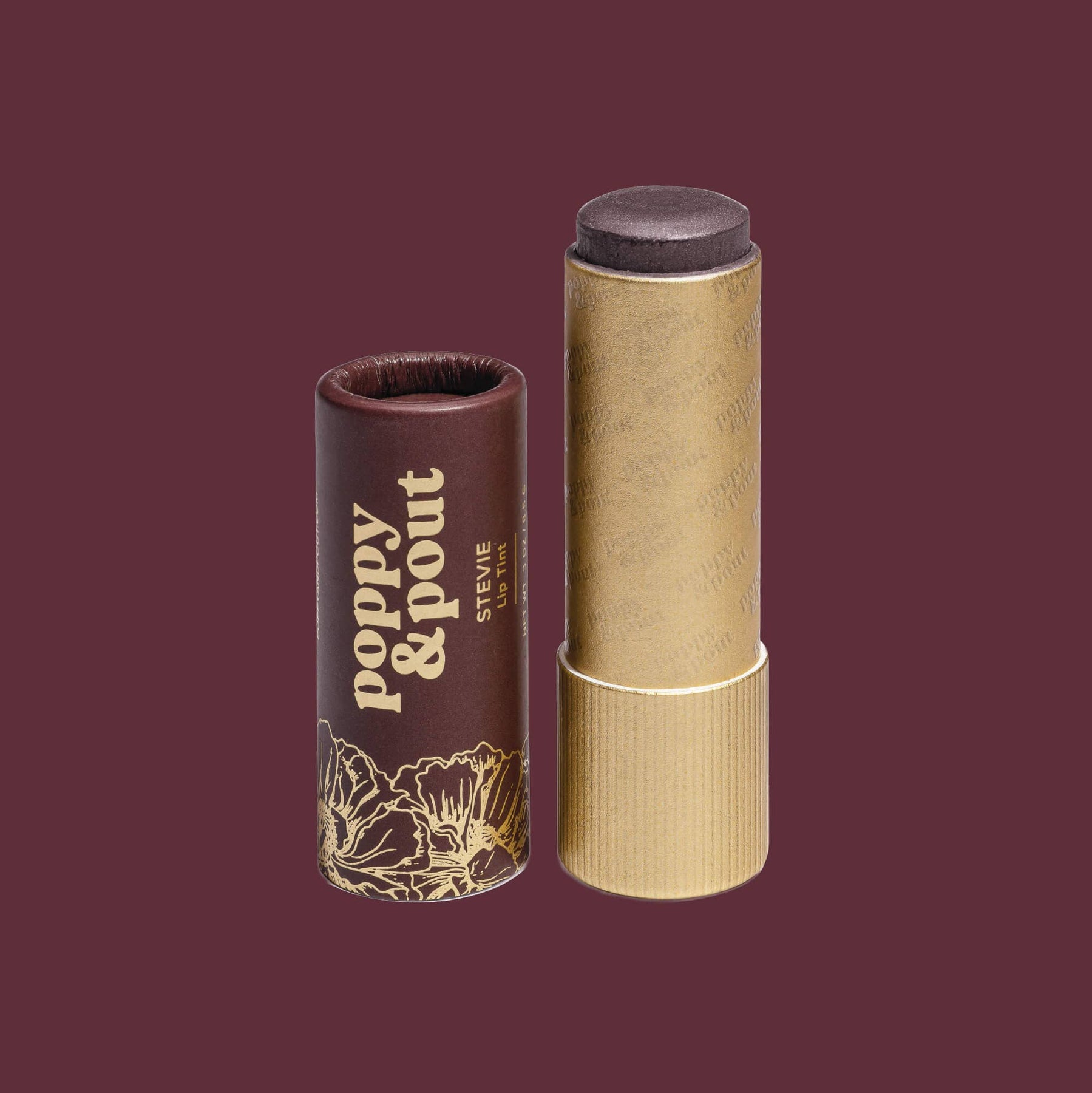 Stevie brings a dark, dramatic shade with subtle shimmer and loads of natural hydration. The cool mauve tone adds edge without overpowering, letting your natural lip color shine through or deepen with extra layers. Every tube carries the beloved Sweet Mint scent and the soft-glide feel of Poppy & Pout's cult-favorite balm base.