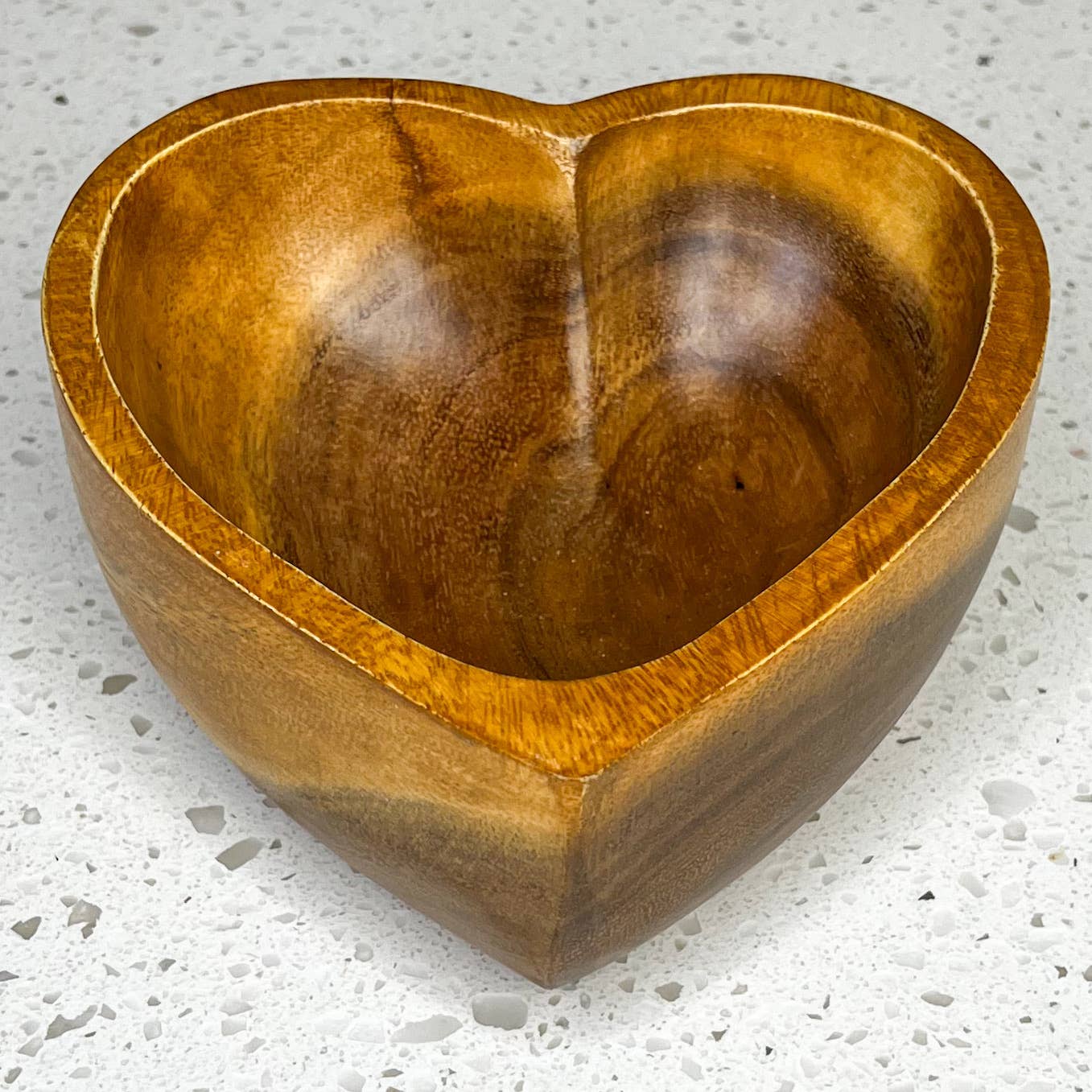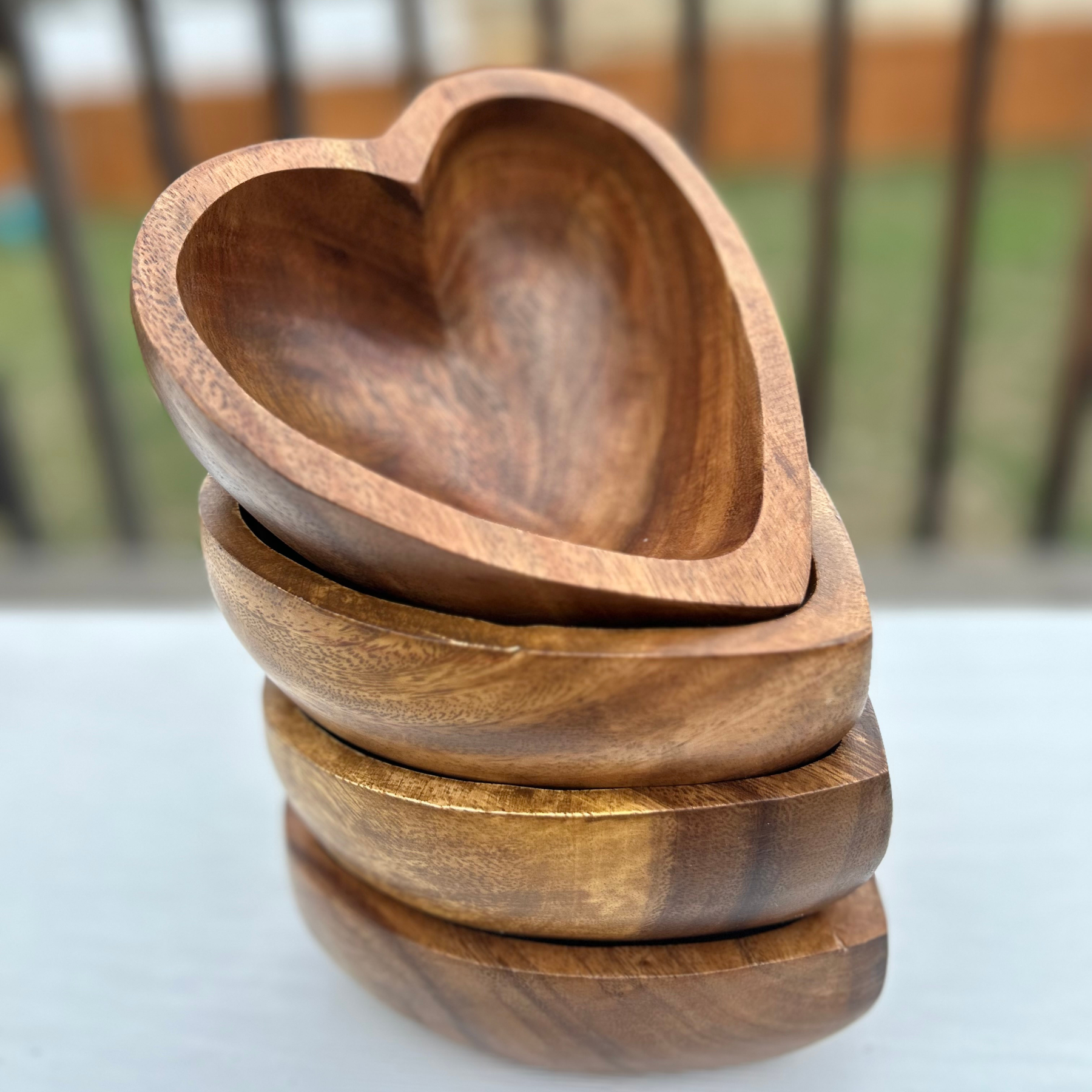 Deep 6" heart-shaped Acacia Wood Bowl.