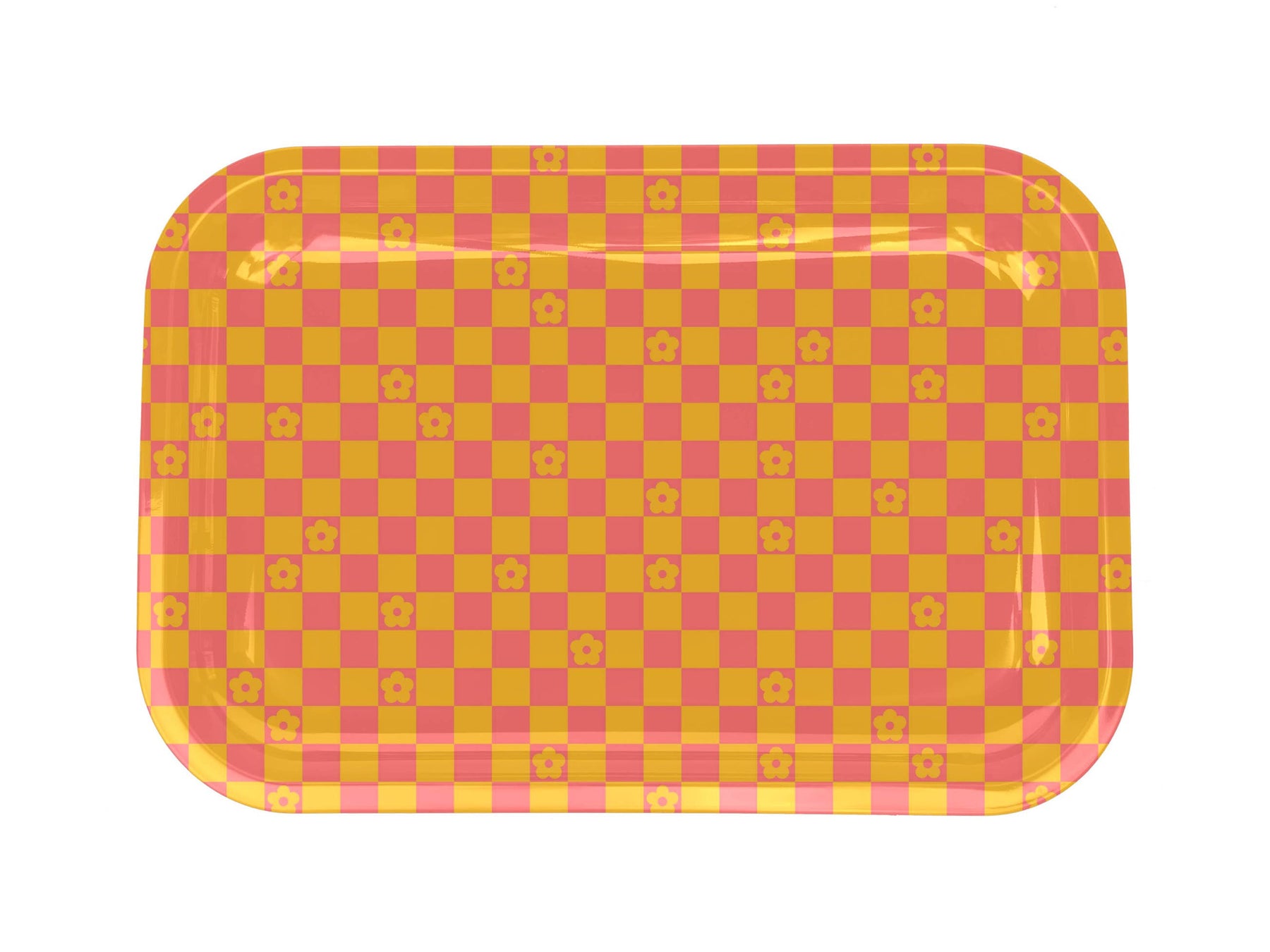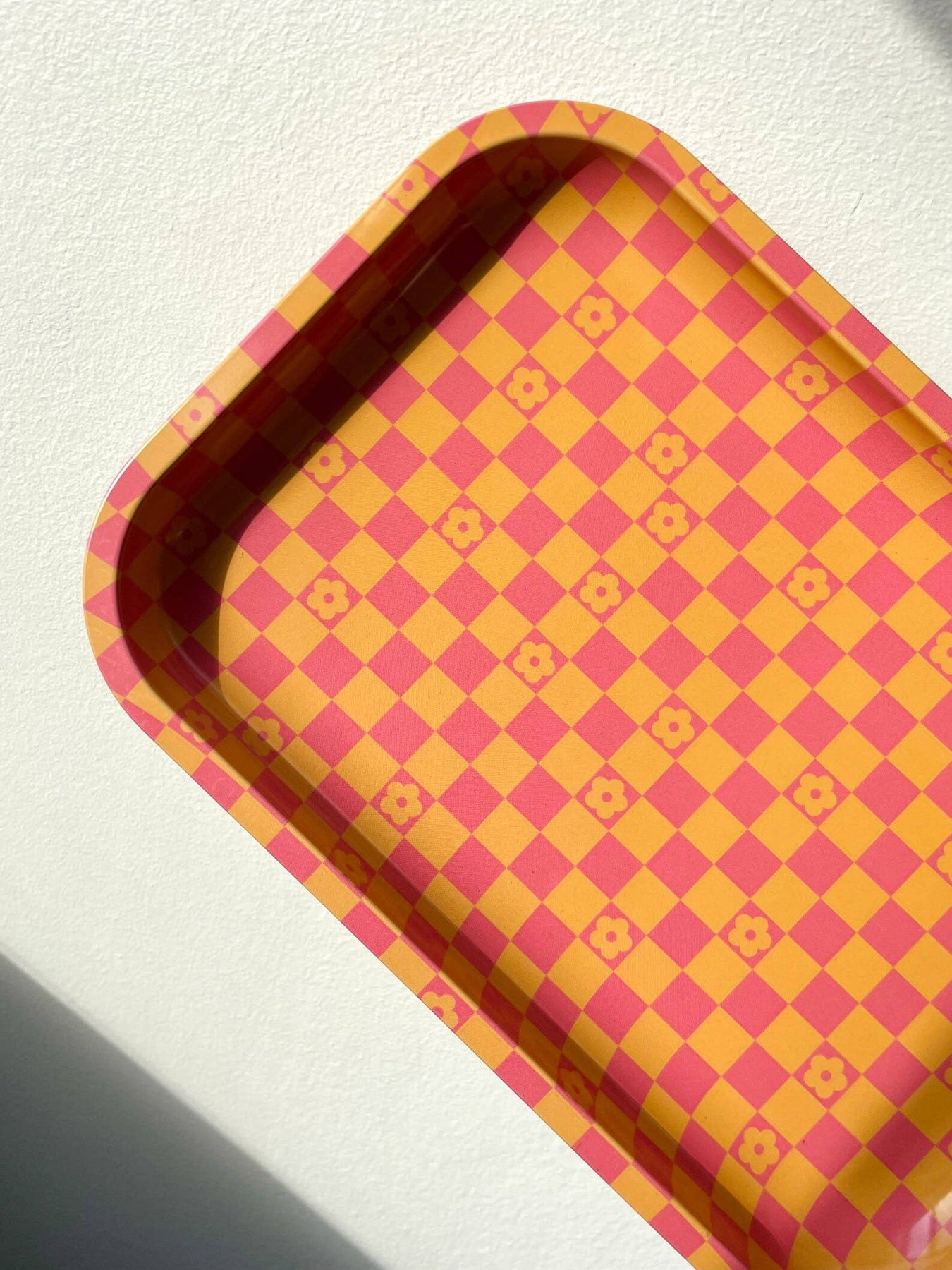This vibrant metal tray brings a playful pop of pattern to your home. Whether catching keys, corralling candles, or serving up snacks, it adds a dose of charm to any tabletop. Its lightweight metal build and glossy finish make it both functional and fun.