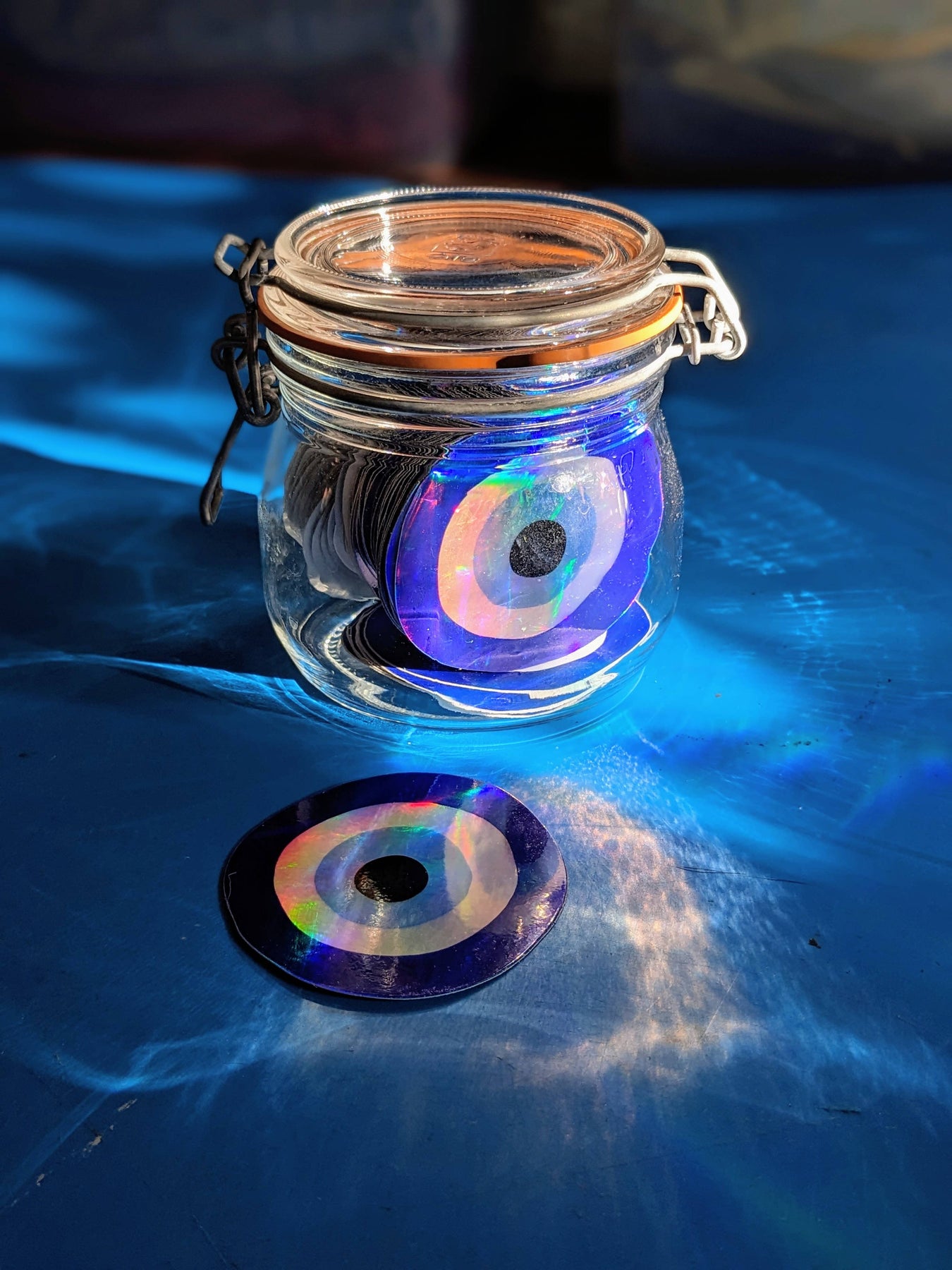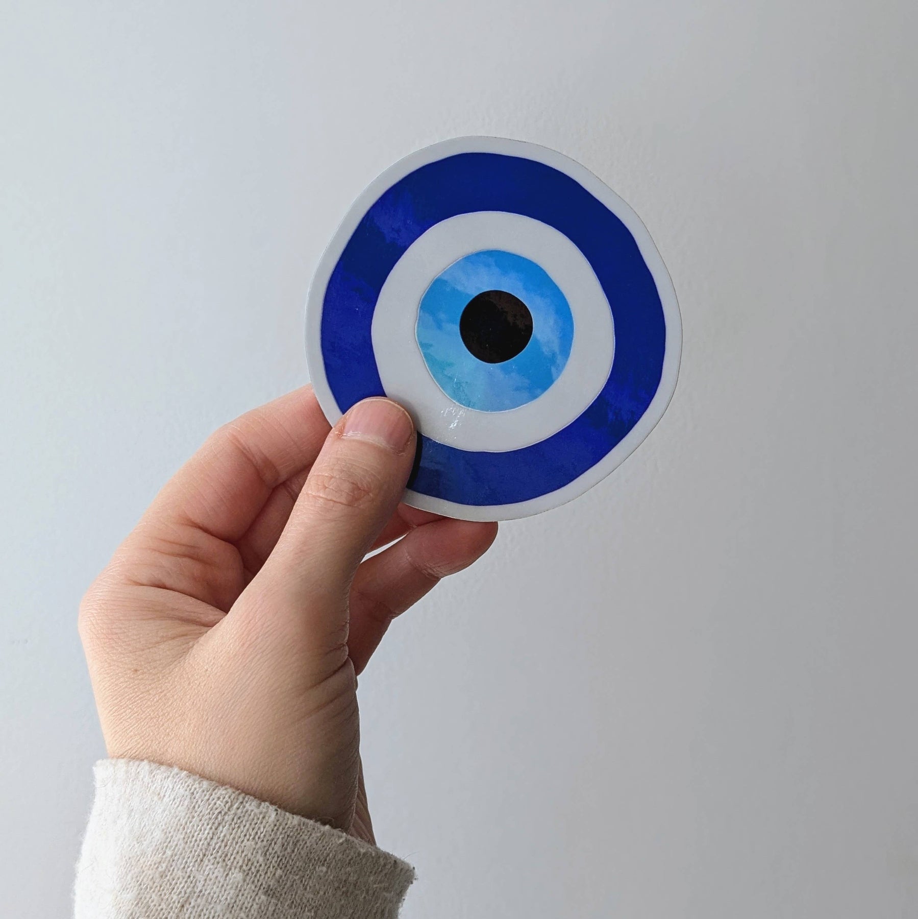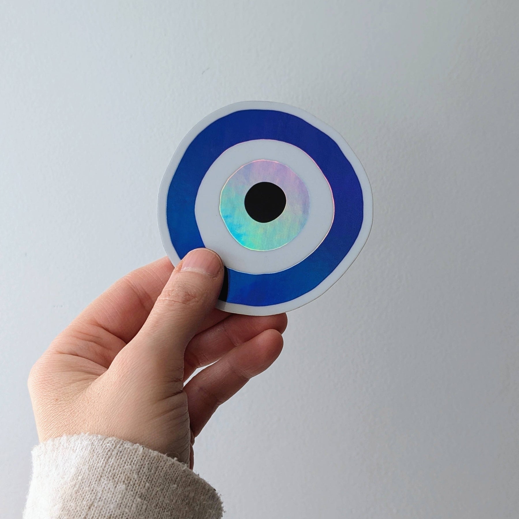 A luminous take on a centuries-old symbol, this iridescent vinyl sticker features the protective nazar—believed to guard against jealousy, harm, and misfortune.