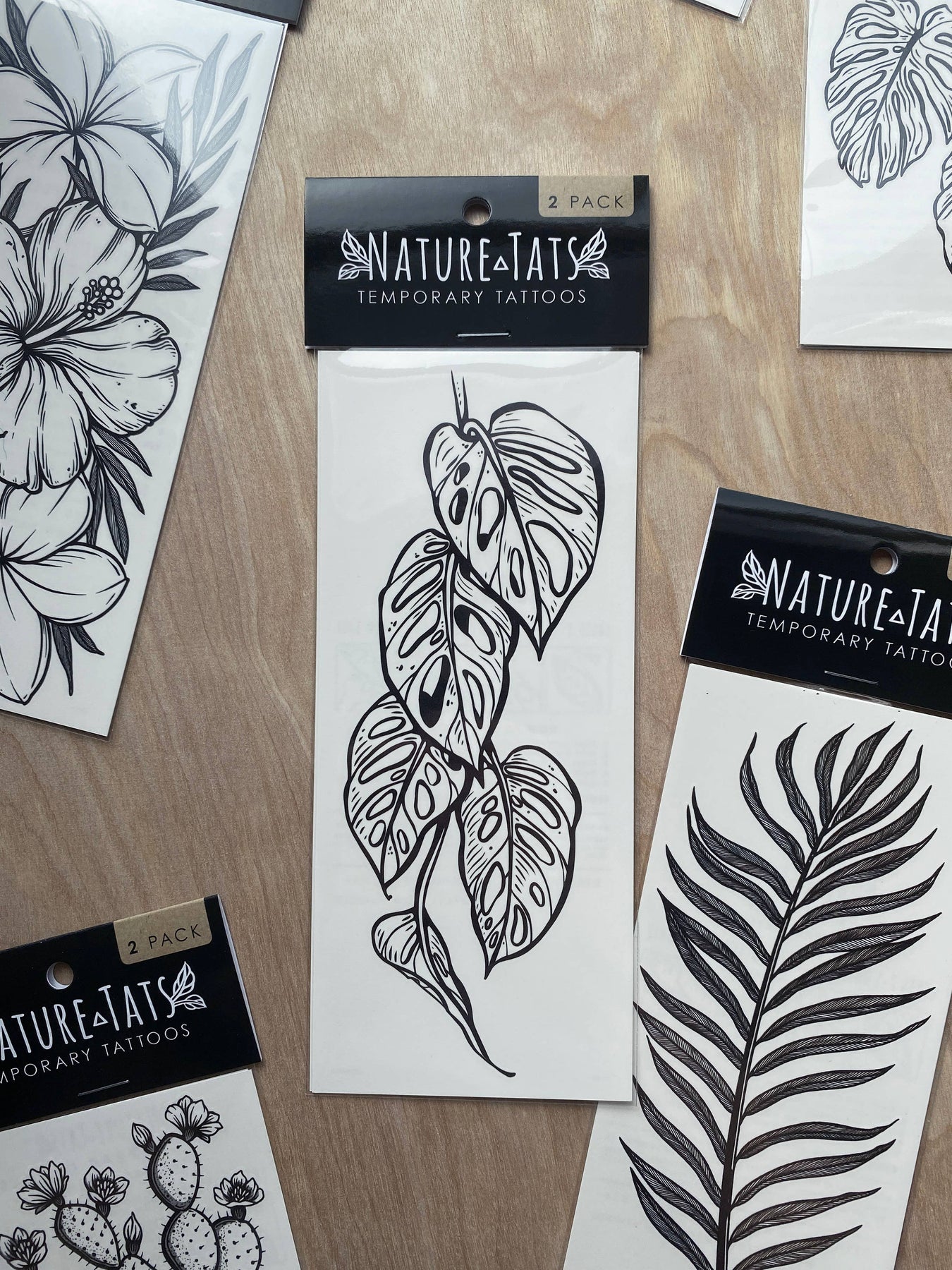 Monstera Vine temporary tattoo. This hand-drawn temporary tattoo design features a healthy cutting of the trendy house plant, Monstera Adansonii, otherwise known as a swiss cheese vine. These deep green jungle vines have several slits in the leaves and a curiosity to them that has plant nerds absolutely obsessed. This design is about 6.5" long. Choose 1-Packs or 2-Packs! Lasts 2-5 days • Water-resistant • Comfortable • Skin Safe All original designs by Allison Wilcoxen in Austin, Texas.