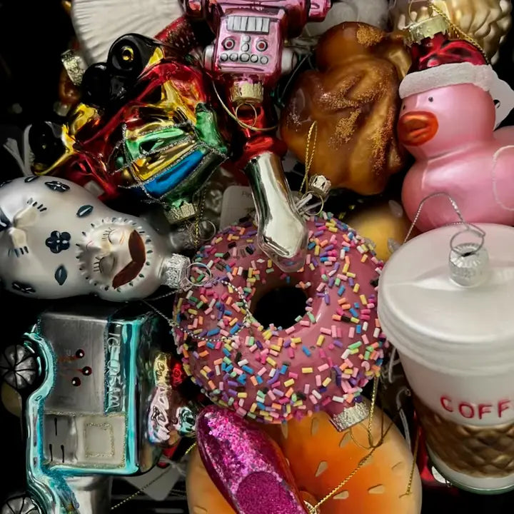 Delicate, whimsical glass creations dangle from the tree, catching the twinkling lights like a kaleidoscope of holiday cheer. Lovingly handcrafted, each ornament is a unique gem, from playful cactus shapes to retro-inspired spheres that transport you back to childhood Christmases. Whether you're seeking a quirky gift, festive home decor, or a cherished keepsake to pass down for generations, these handmade glass ornaments are a delightful addition to any tree or stocking. Embrace the spirit of the season with a touch of vintage charm and modern flair.