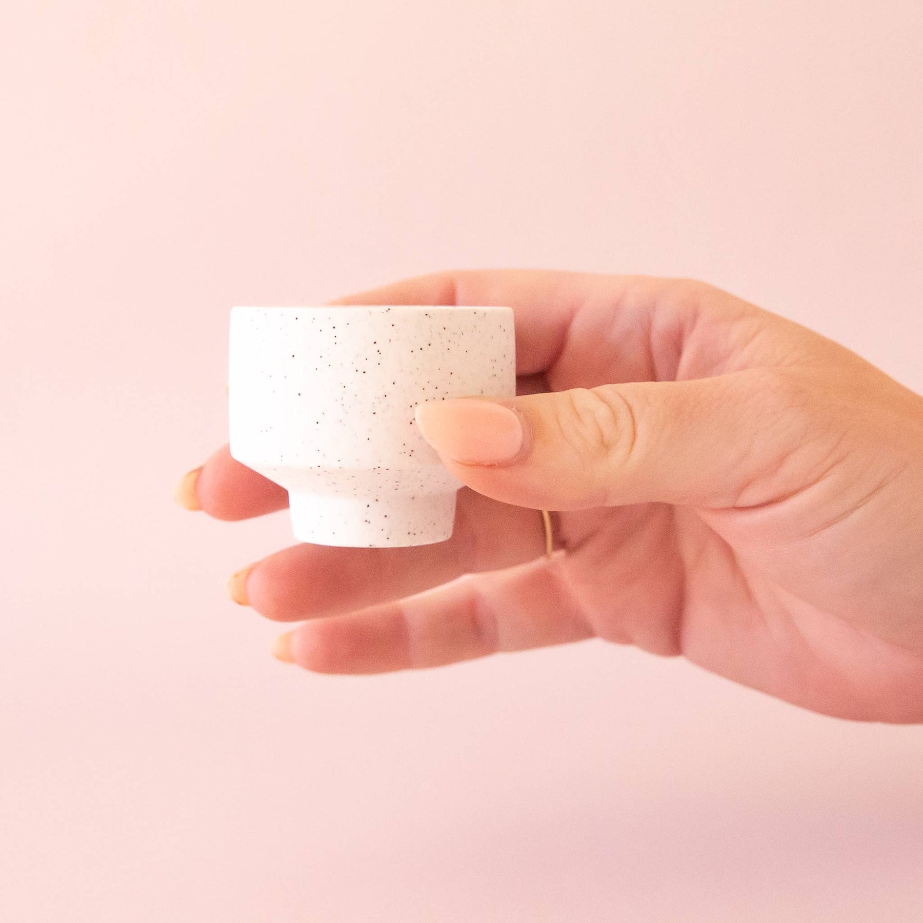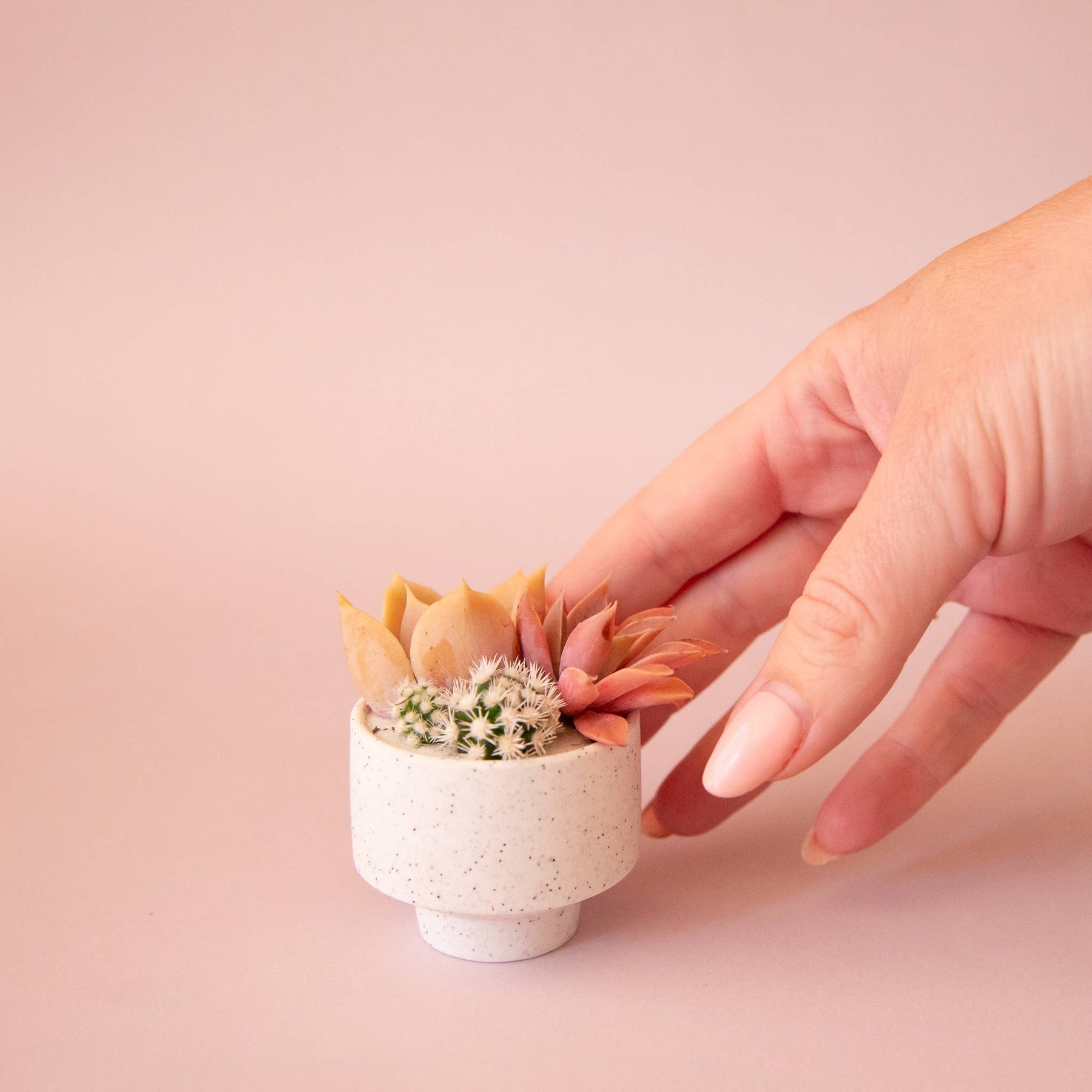 A mini take on a customer favorite, this ceramic footed planter features a clean speckled finish and modern profile perfect for small succulents or air plants. Minimalist, playful, and easy to style, it adds charm to any shelf or sill.
