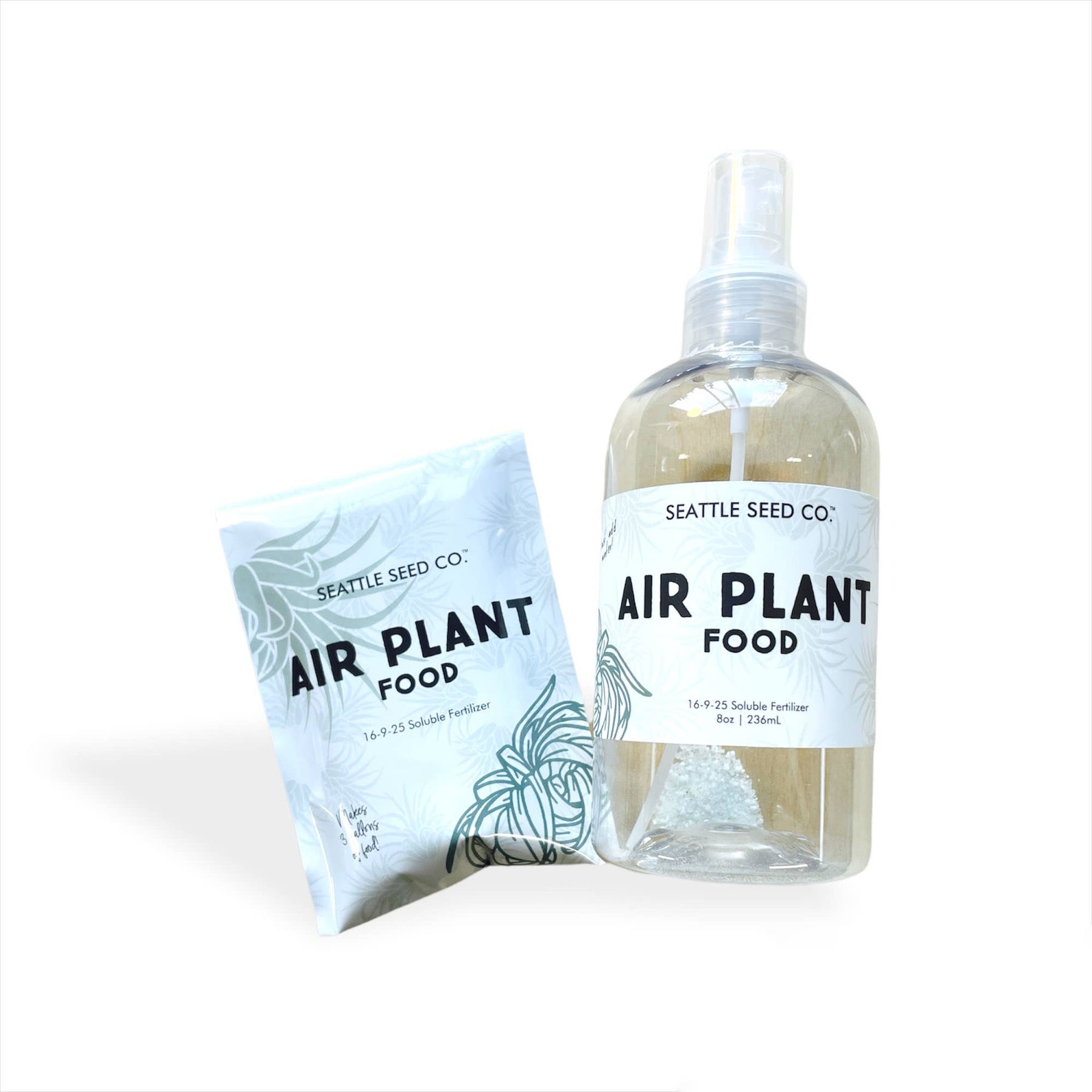 Give your air plants and bromeliads the nutrients they need to thrive. This specially formulated blend promotes lush growth and vibrant blooms, with a concentrated mix that you simply dilute in cold water. The set includes an 8oz recyclable bottle pre-measured for easy mixing, plus a resealable refill bag that makes gallons more—saving both money and packaging waste. A must-have for any plant enthusiast looking to keep their collection healthy year-round.